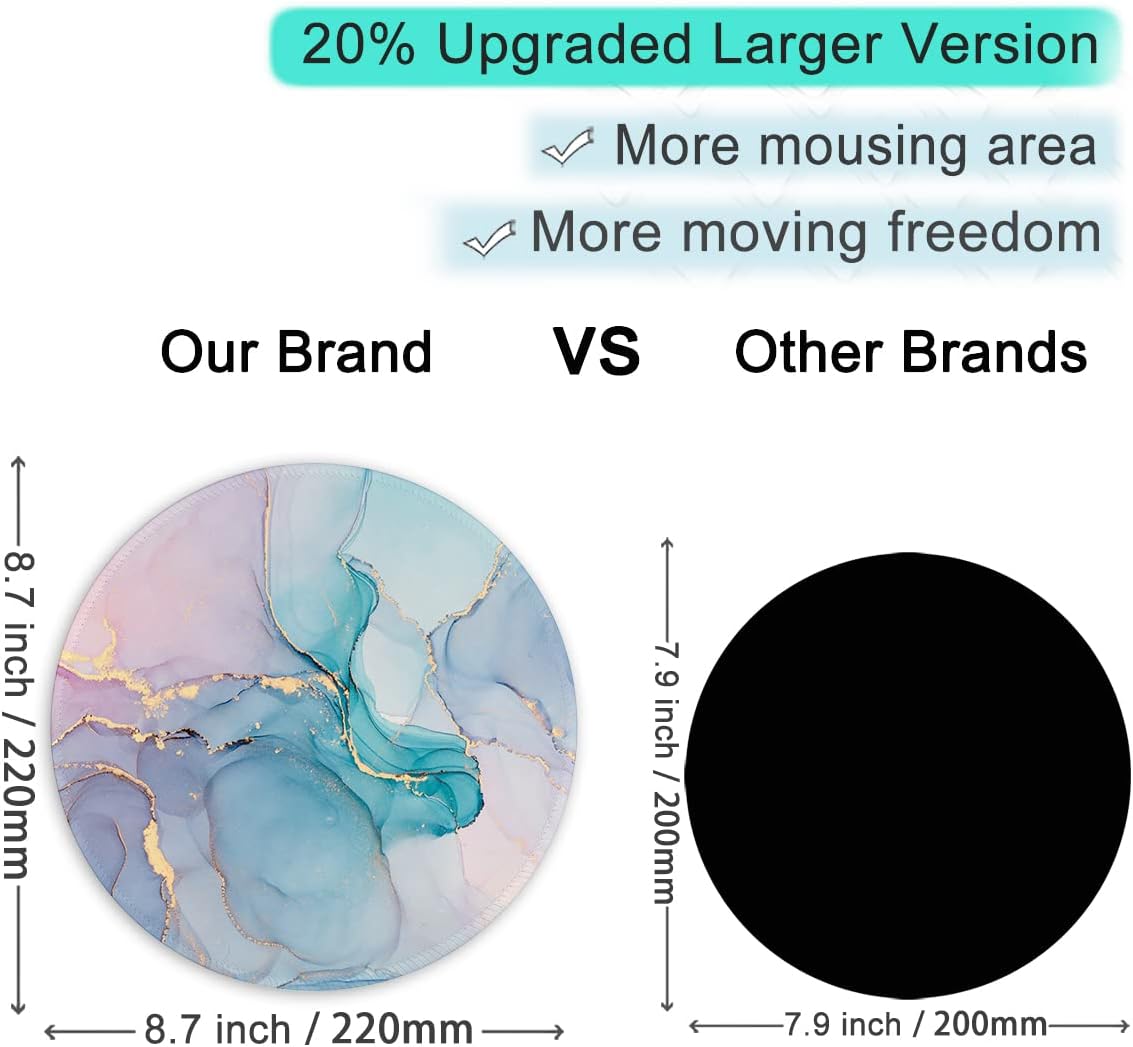 - Outstanding Anti-slip & Smooth Surface:Our circular mouse pad has a premium rubber base for excellent grip, staying put on any desk. Its smooth top enables effortless mouse gliding. Whether gaming or designing, it minimizes friction for precise cursor control, a must-have for pros and gamers