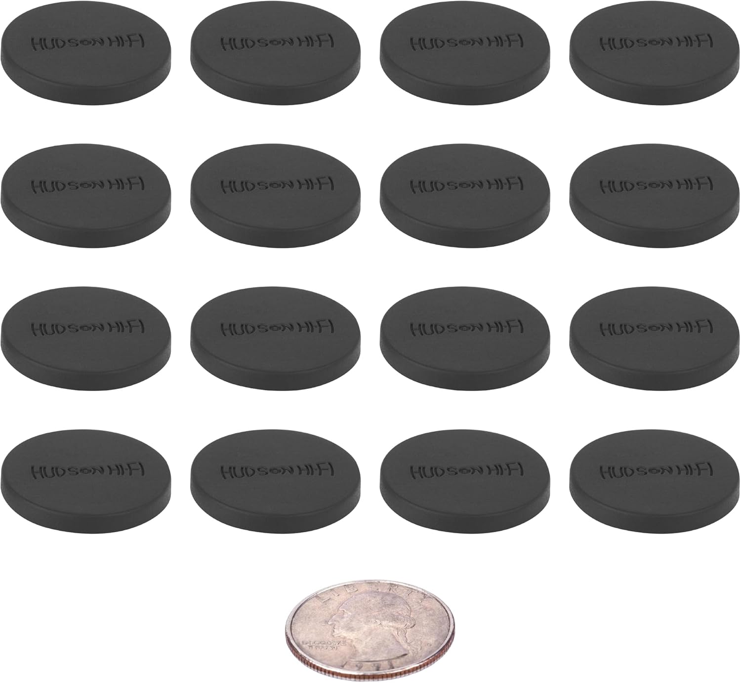 Speaker Isolation Feet – 16-Pack 1" Platinum Silicone Dots by Hudson Hi-Fi – Non-Adhesive, Non-Skid Anti-Vibration Pads for Turntables, Subwoofers, Audio Equipment – 20 Duro