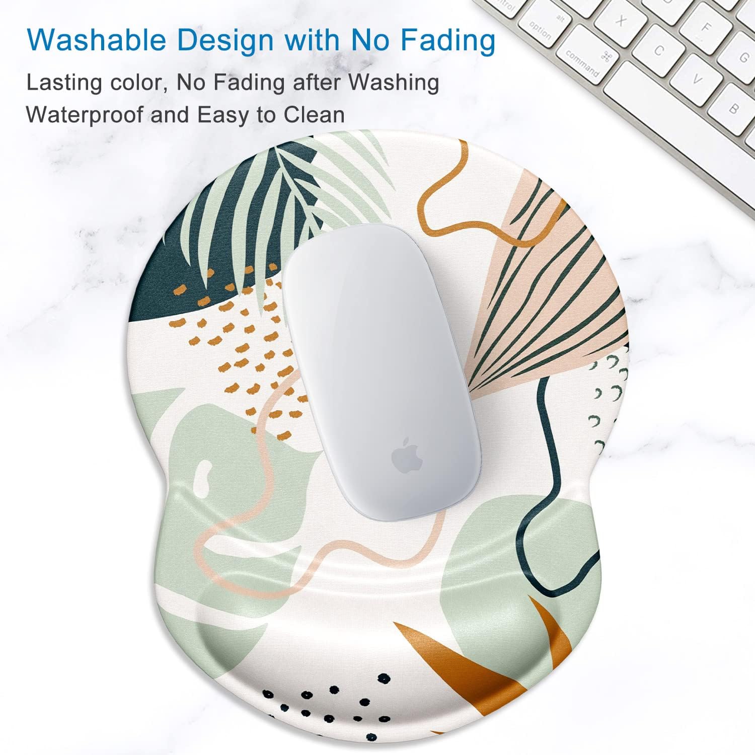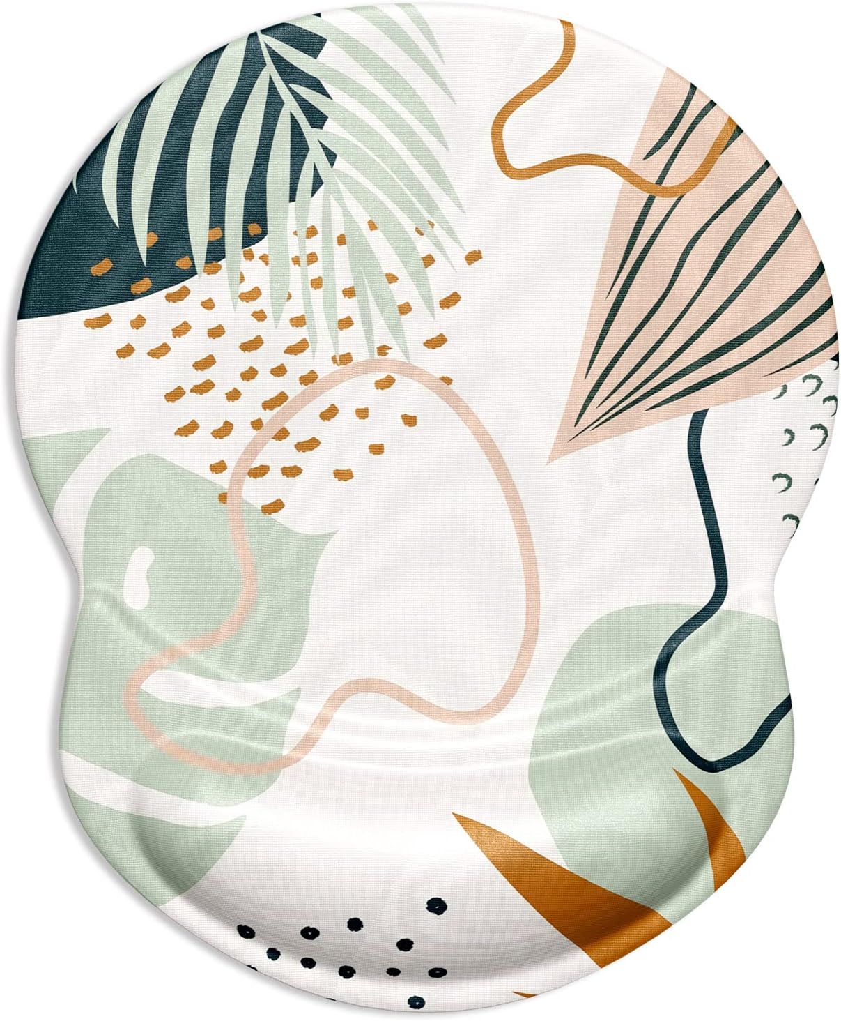 ITNRSIIET Ergonomic Mouse Pad with Gel Wrist Support Small Wrist Rest Smooth Surface Non-Slip PU Base Comfortable Office Supplies Pain Relief, 8.7 x 7.2 inches, Tropical Plants