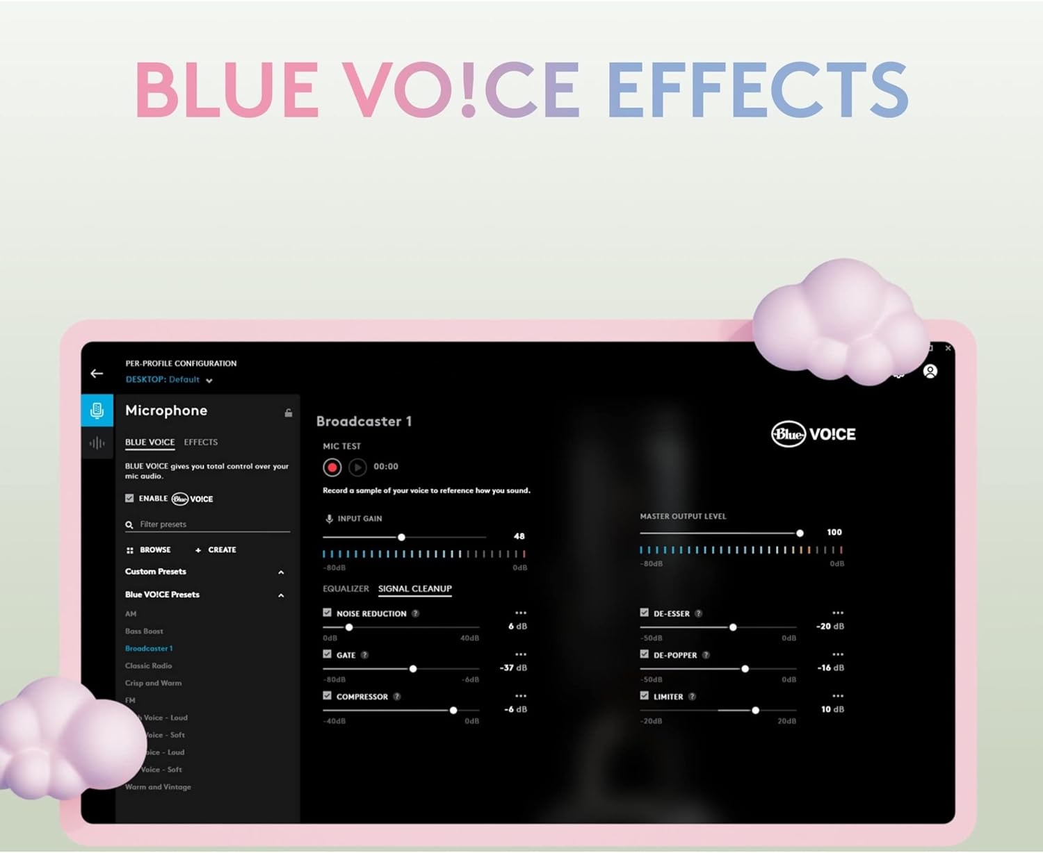 - Blue VO!CE Effects: Yeti studio microphone improves your sound and stream with fun vocal effects, HD samples, and studio tools like EQ, limiter and Noise Removal, powered by NVIDIA Broadcast