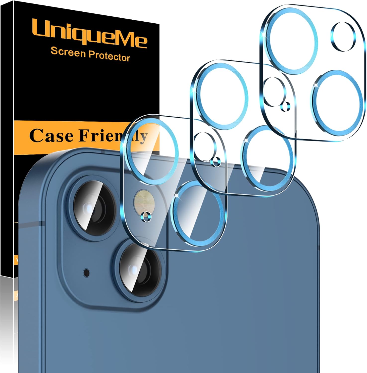 UniqueMe [3 Pack Compatible with iPhone 13 6.1" / iPhone 13 Mini 5.4" Camera Lens Protector Tempered Glass, [Case Friendly][New Version][Scratch-Resistant][Easy Installation] - Blue Circle