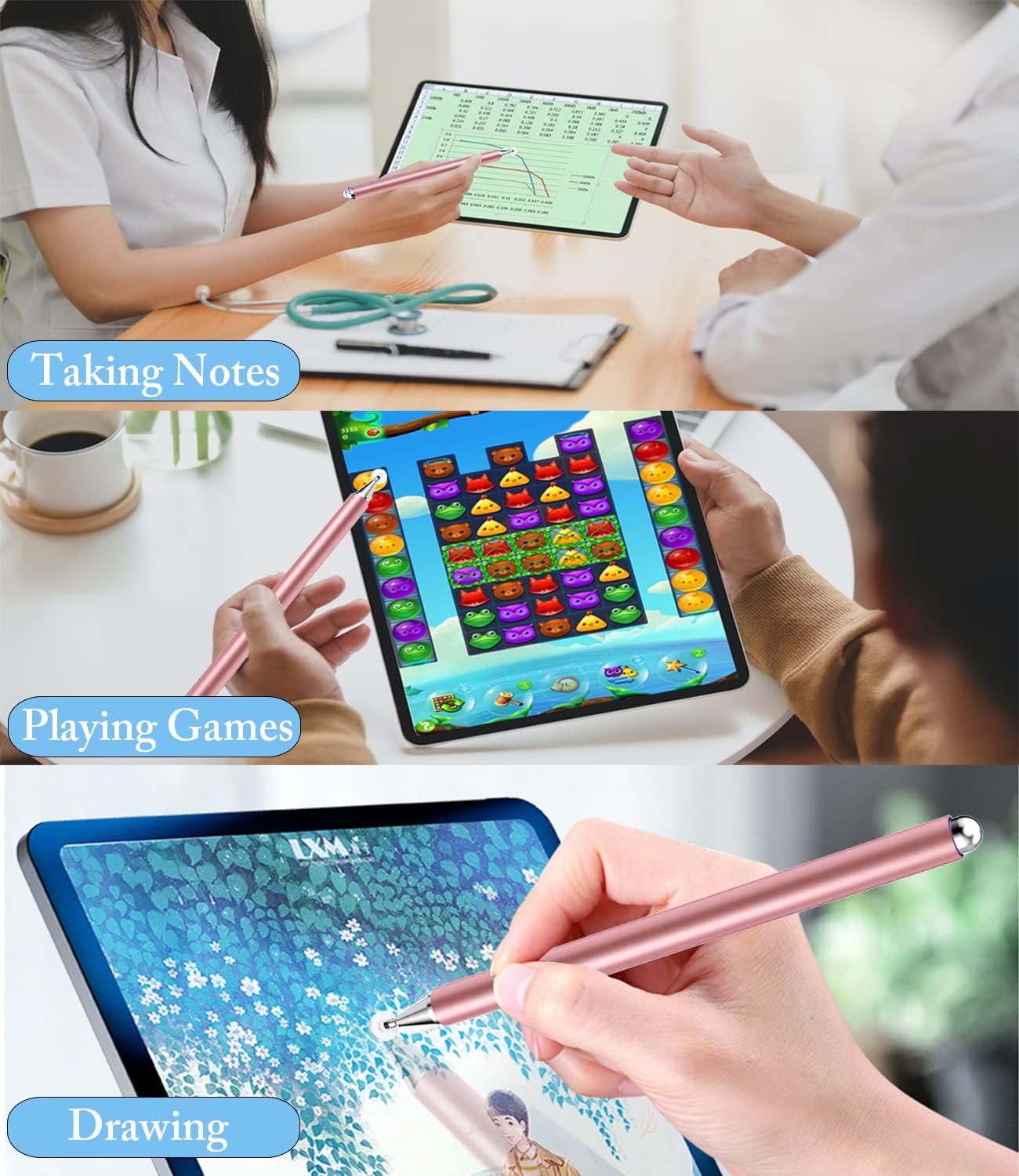 - APPLICABLE SCENE: It came in purple and silver. The capacitive stylus is suitable for students to writing and drawing for school work, teachers to take notes for lectures, artists to draw, office workers to journaling on your iPad. Best gifts for children during Christmas and other holidays.