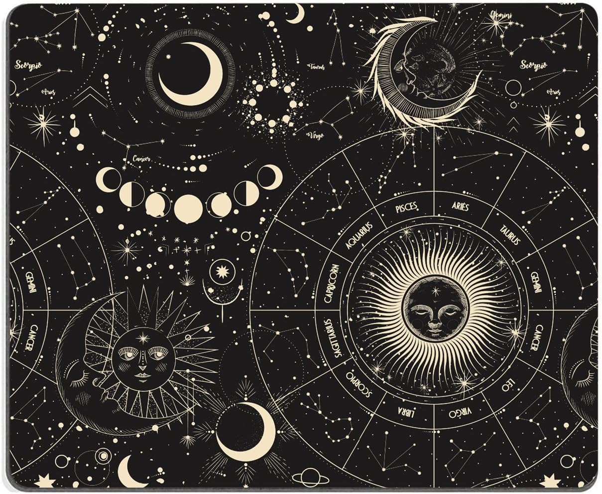 Hokafenle Mouse Pad, Square Personalized Computer Mouse Pads with Planet Design, Washable Mouse Mat, Gaming Office Home Non-Slip Rubber Base Mousepad, Moon and Sun