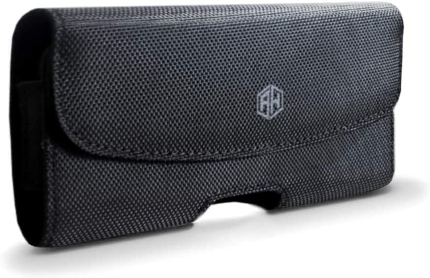 AH Men Phone Belt Holder Pouch Cell Phone case Nylon Phone Holster with Belt Loop Belt Clip for iPhone16 Plus 16 Pro Max 15 Plus, S24 S25 Ultra Clip Pouch fits Otterbox/Thick Case (X-Large)