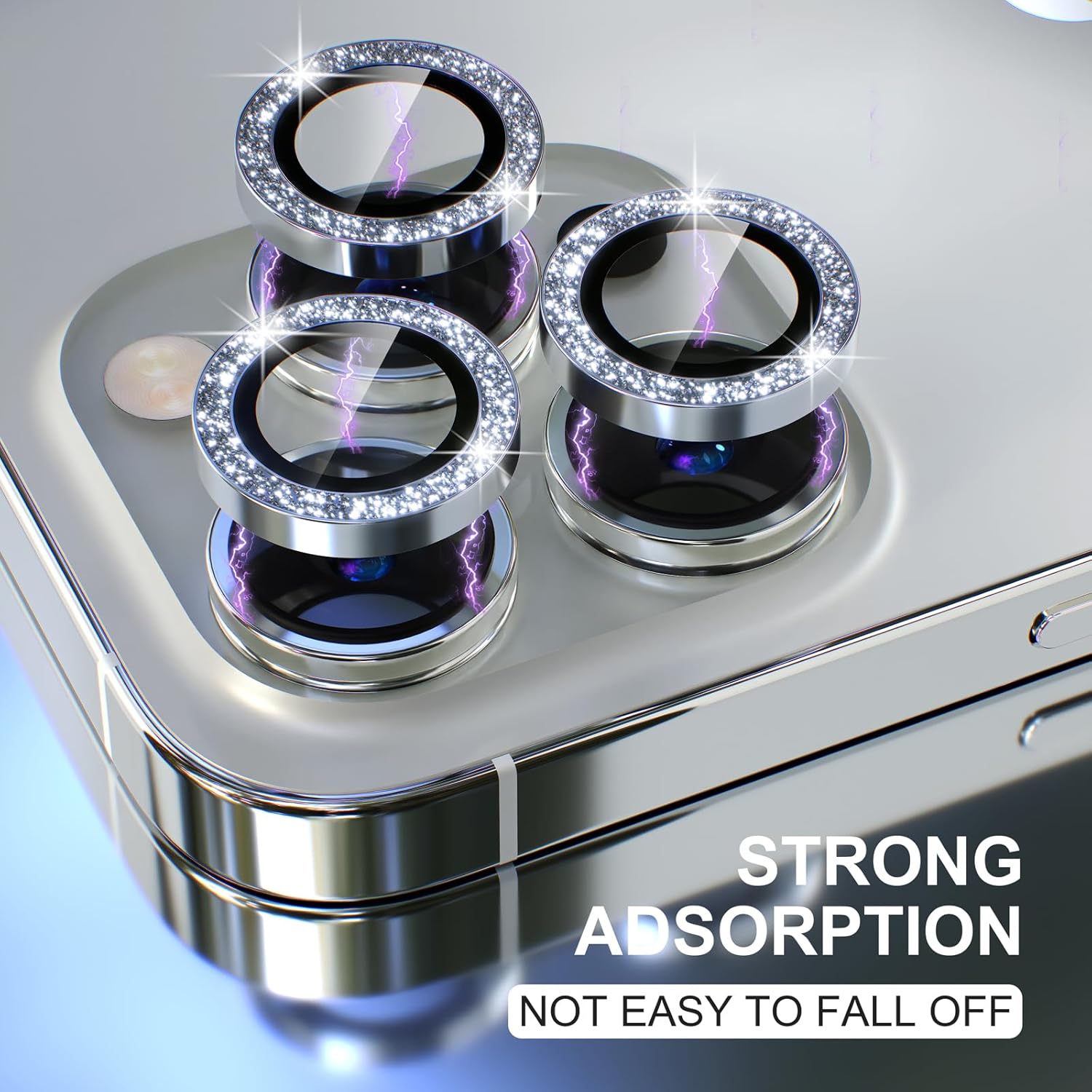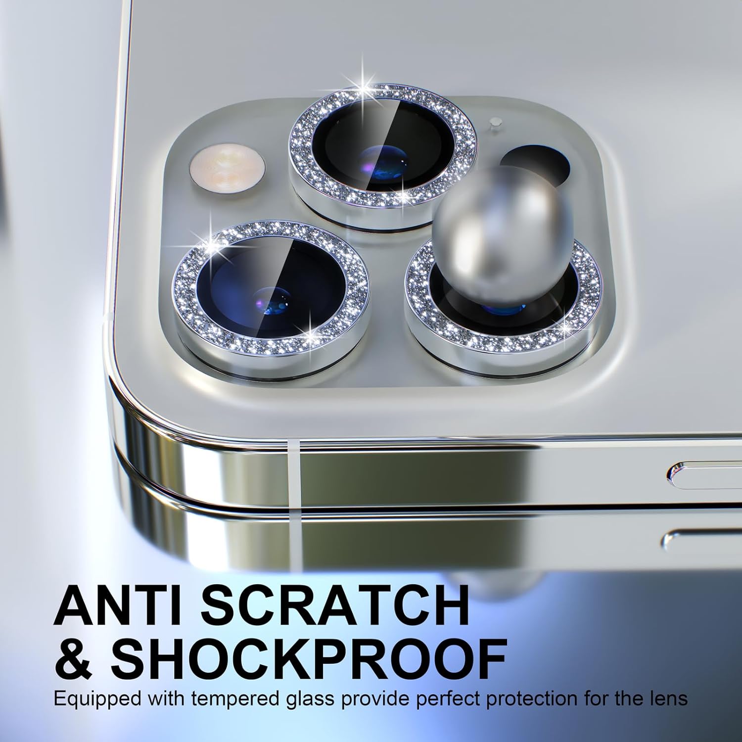 - Personalized Decoration: Made of high-quality aviation aluminum metal ring and 9H tempered glass and inlaid with bling rhinestones to give your iPhone 13 Pro/Pro Max camera lens a diamond gorgeous appearance, shining in the sun, very eye-catching and complimentary.
