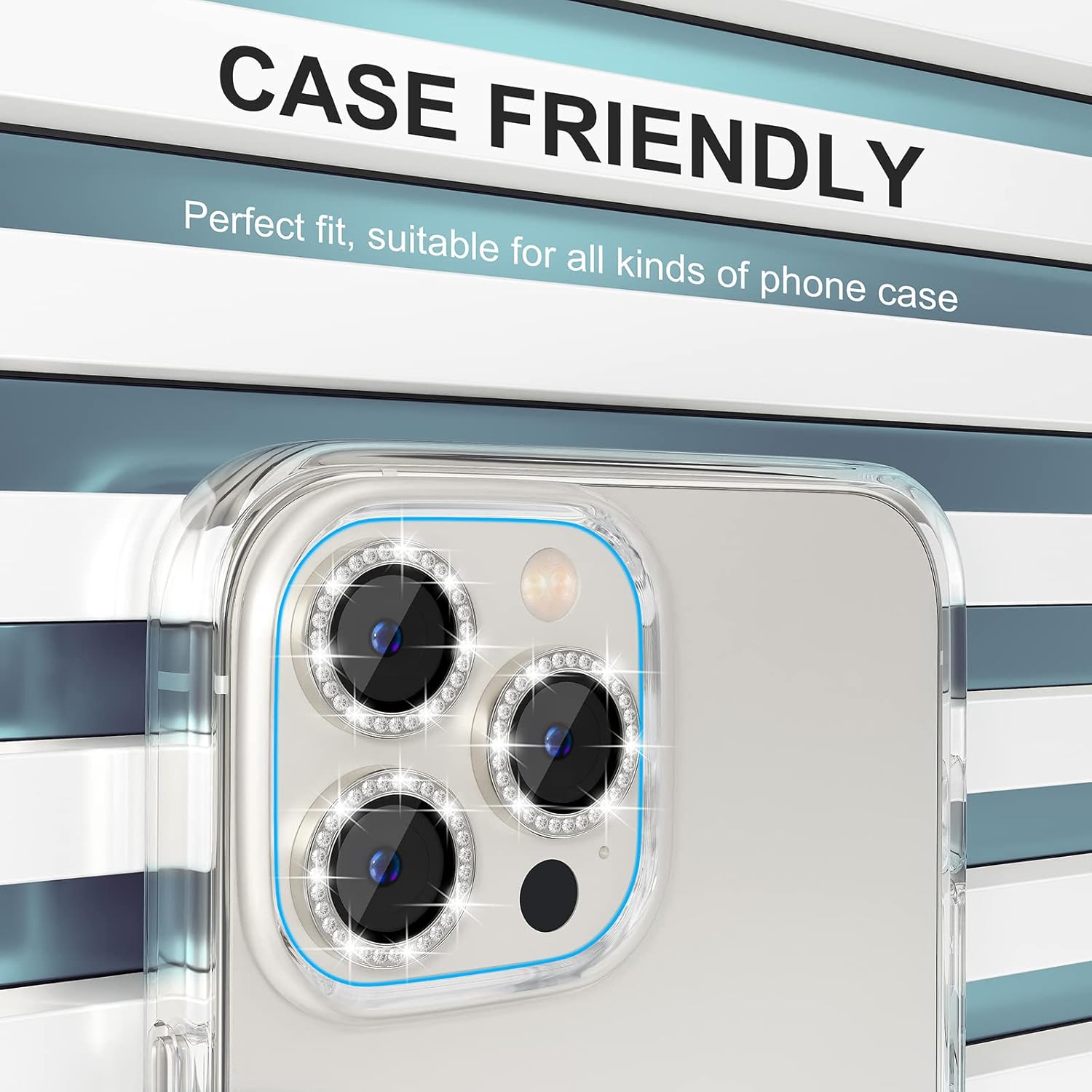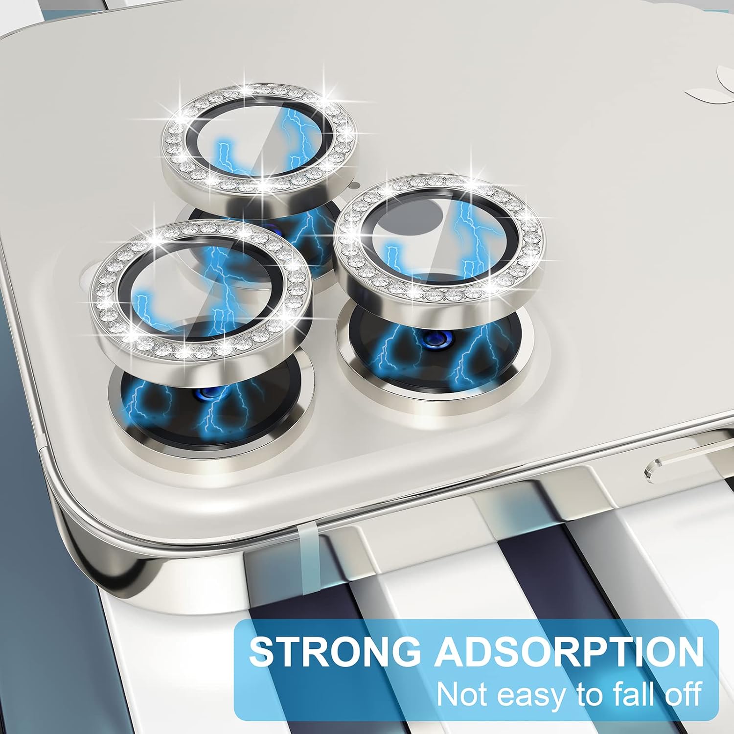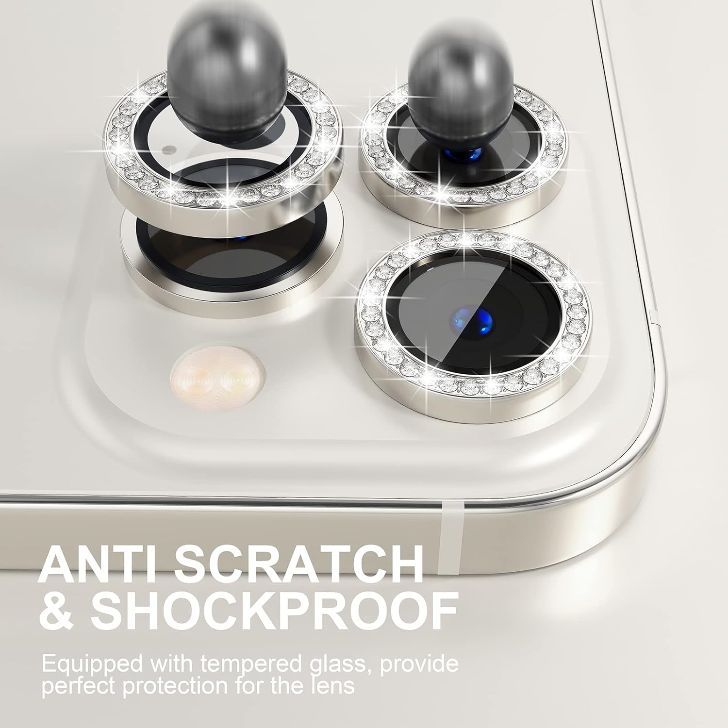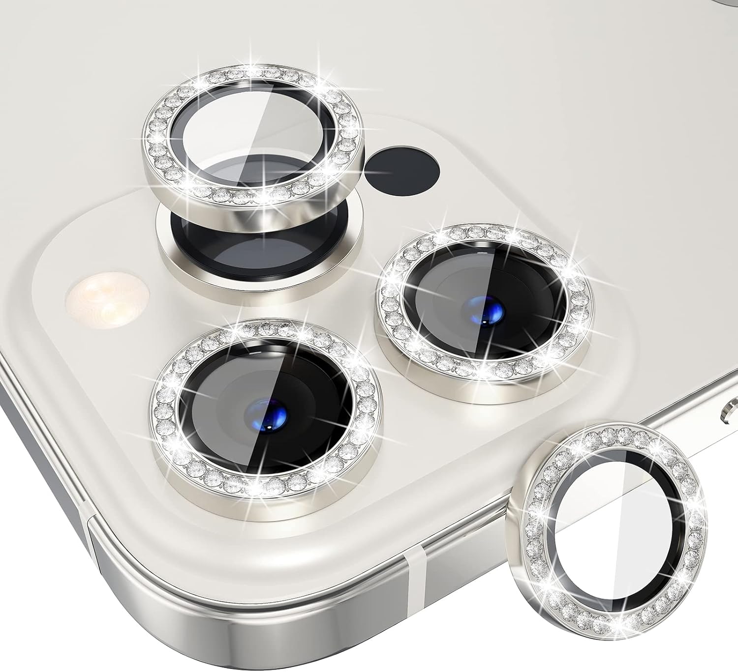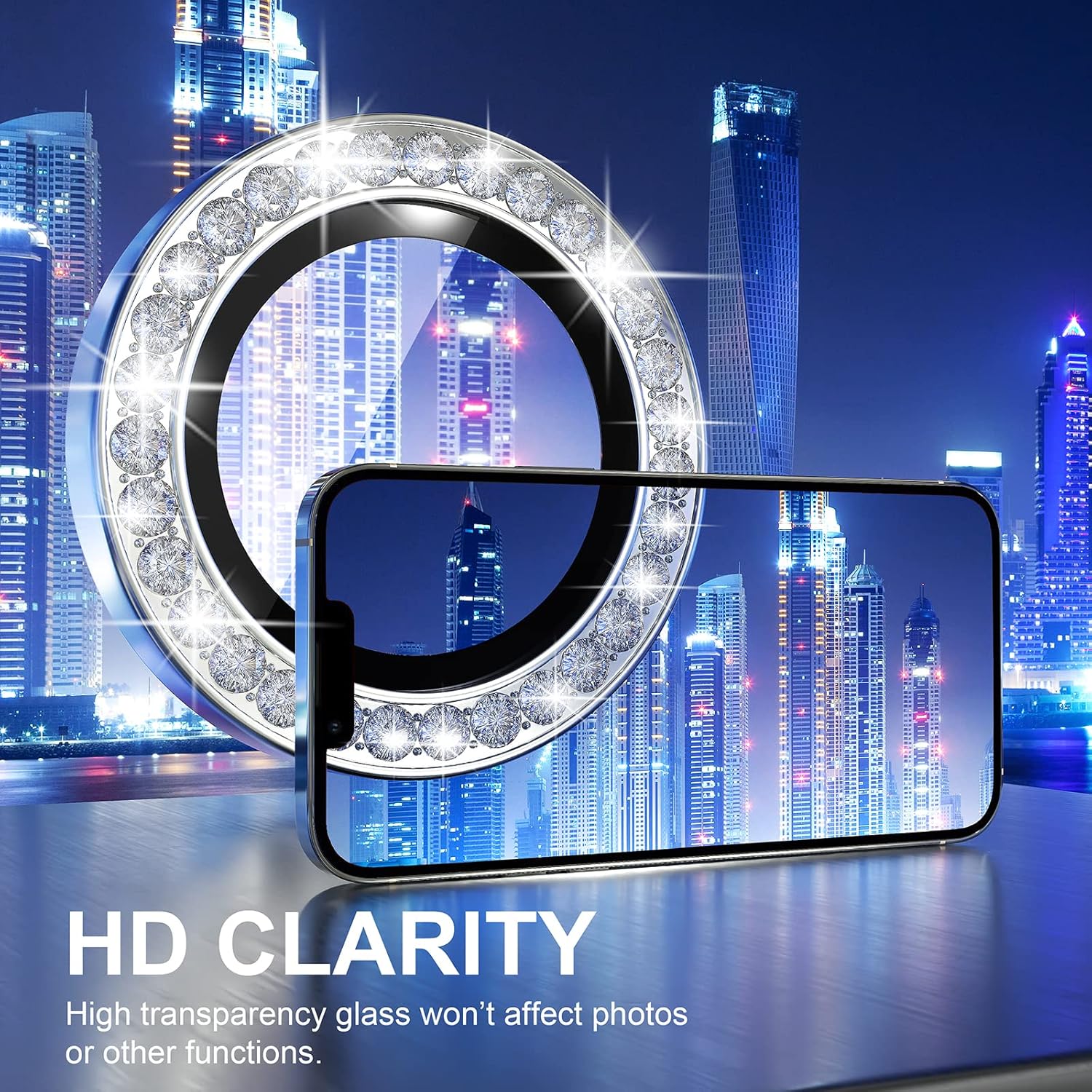 - Personalized Decoration: Made of high-quality aviation aluminum metal ring and 9H tempered glass and inlaid with bling rhinestones to give your iPhone 13 Pro/Pro Max camera lens a diamond gorgeous appearance, shining in the sun, very eye-catching and complimentary.