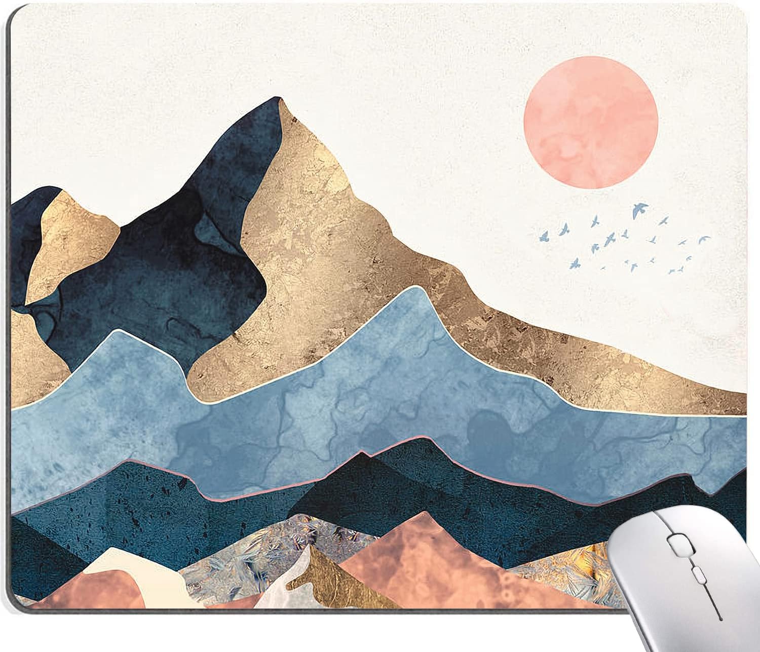 Mouse Pad, Cute Mountain Sunrise Mouse Pads, Square Washable Cloth Personalized Mouse Mat with Design, Gaming Office Home Non-Slip Rubber Base Computer Mousepad