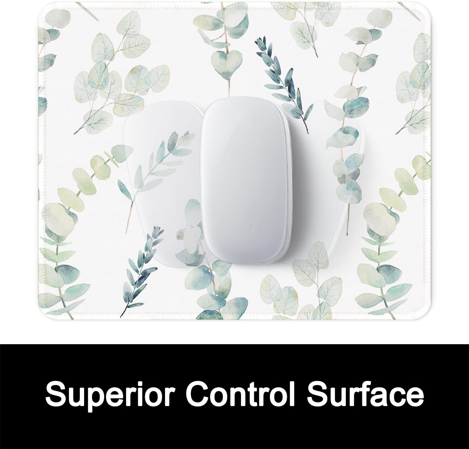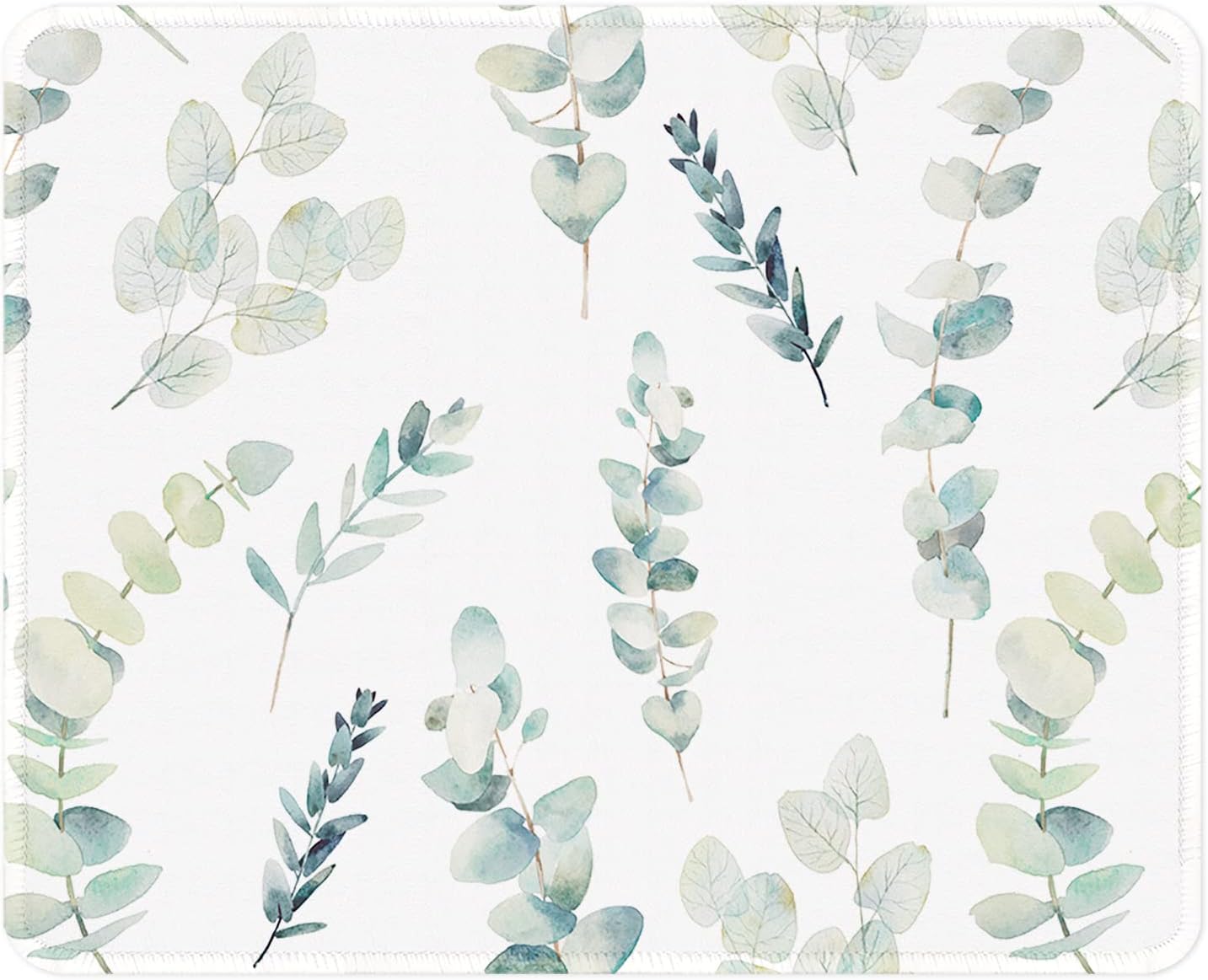 ITNRSIIET Mouse Pad with Stitched Edge Premium Textured Smooth Precise Operation Waterproof Washable Non-Slip Rubber Base Desktop Protection Mat, 10.2×8.3×0.12 inches, Eucalyptus Branches