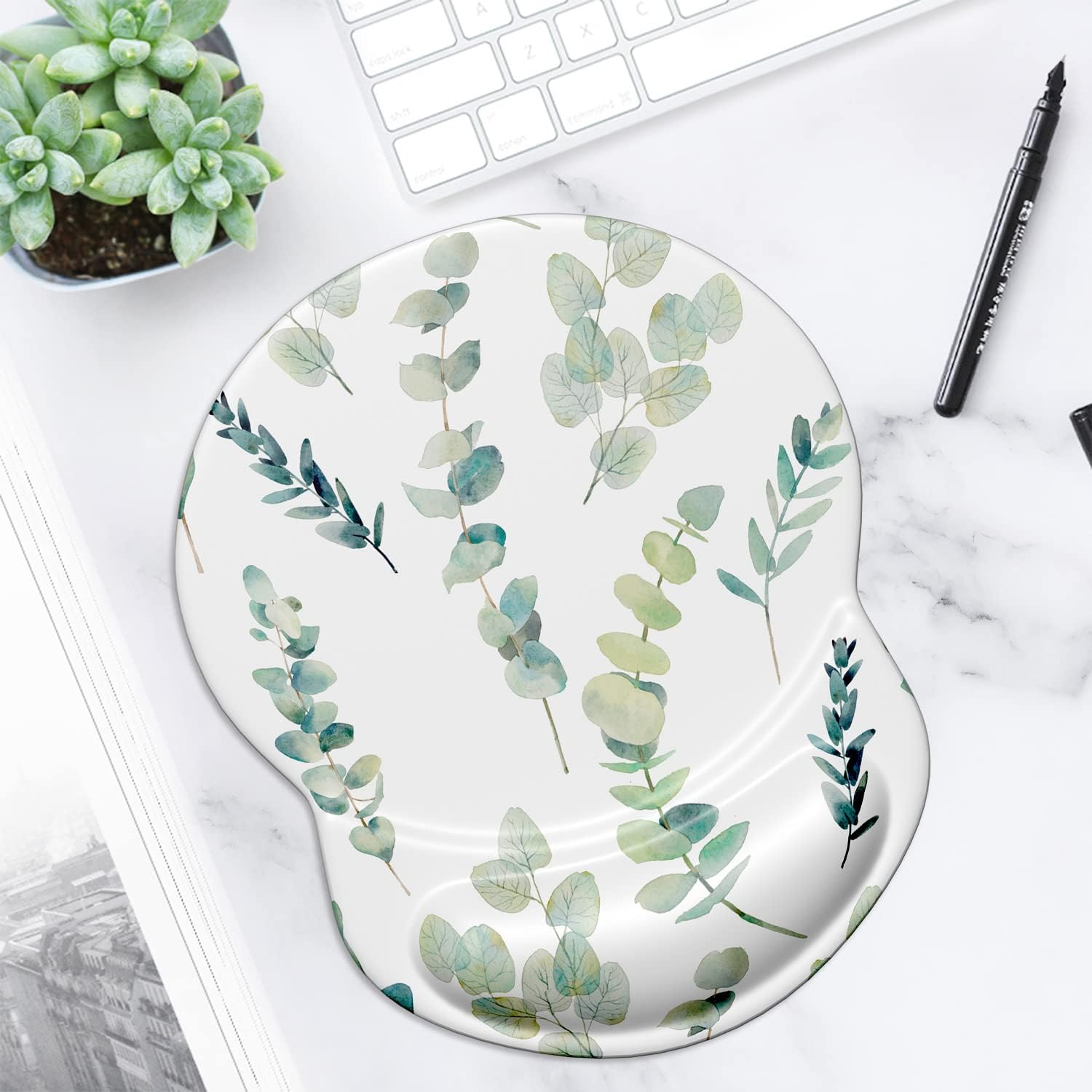 ITNRSIIET Ergonomic Mouse Pad with Gel Wrist Support Small Wrist Rest Smooth Surface Non-Slip PU Base Comfortable Office Supplies Pain Relief, 8.7 x 7.2 inches, Eucalyptus Branches