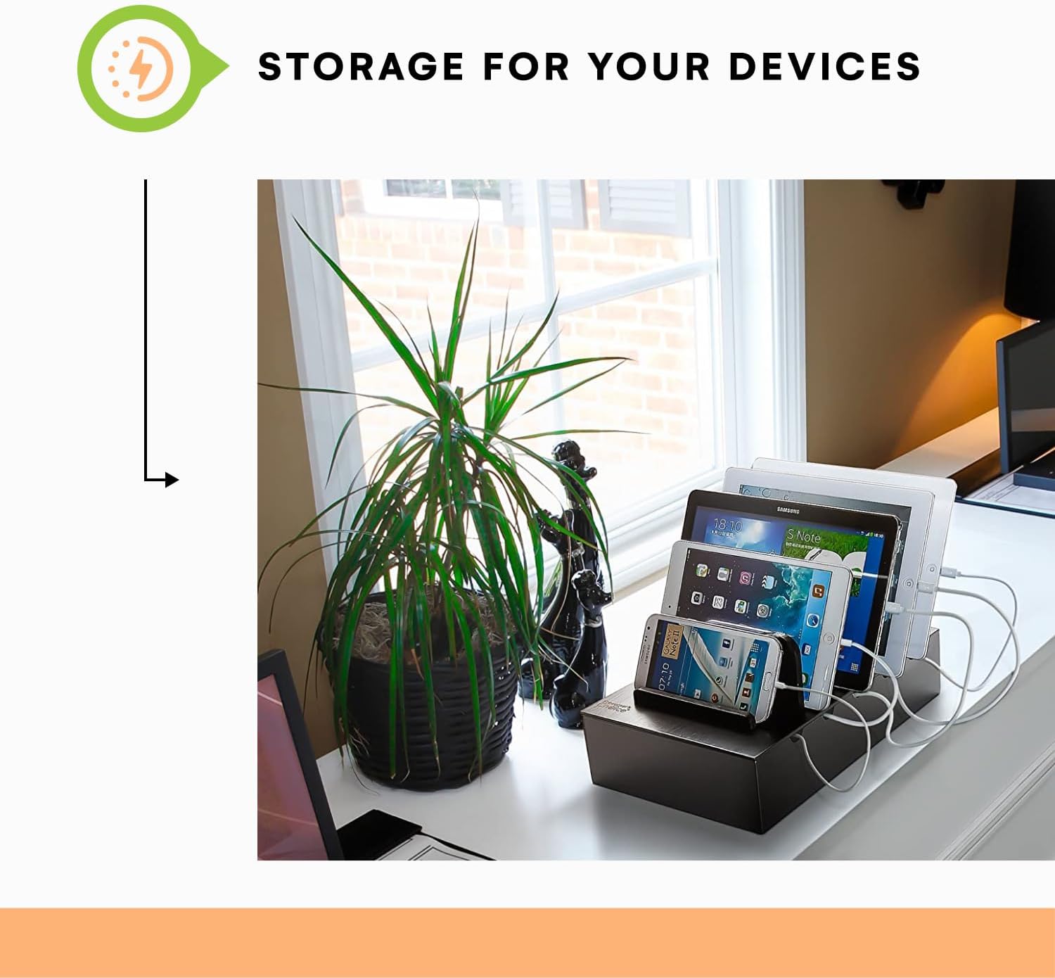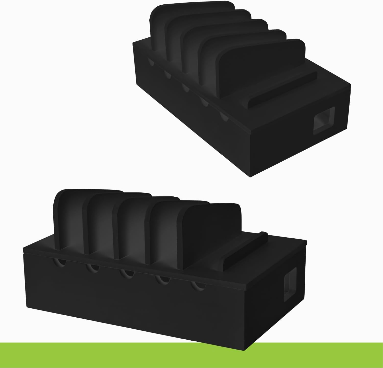 - SLEEK, SIMPLE CHARGING STATION: This multi-device organizer with removable divider slots, houses up to five smartphones or tablets.