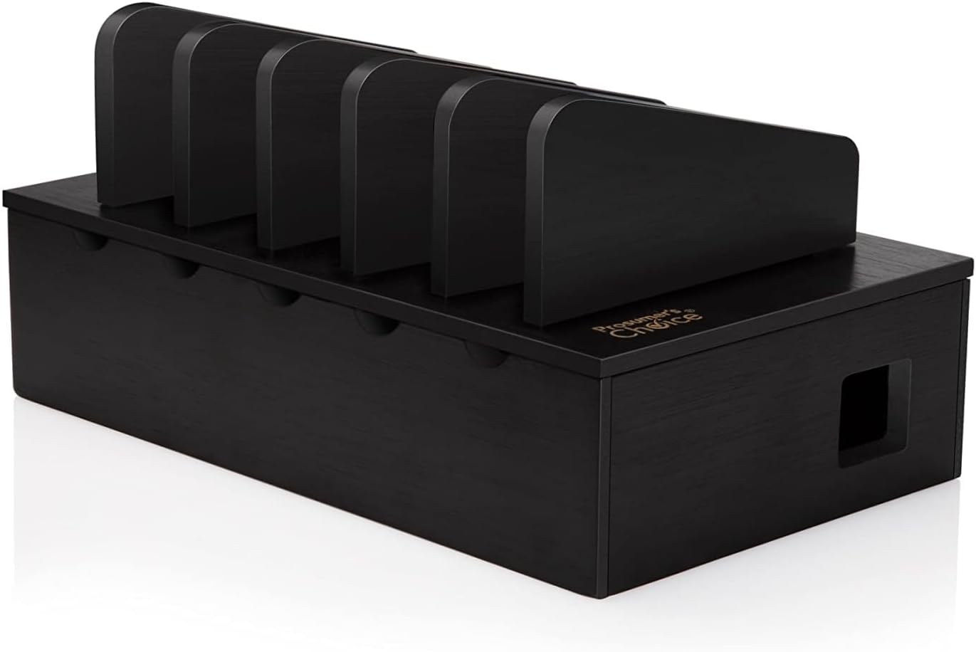 Prosumer's Choice Natural Bamboo Device Charging Station for Multiple Devices | Desk Dock Organizer for Cell Phone, Tablet, Apple iPhone, iPad | with Removable Dividers - Black