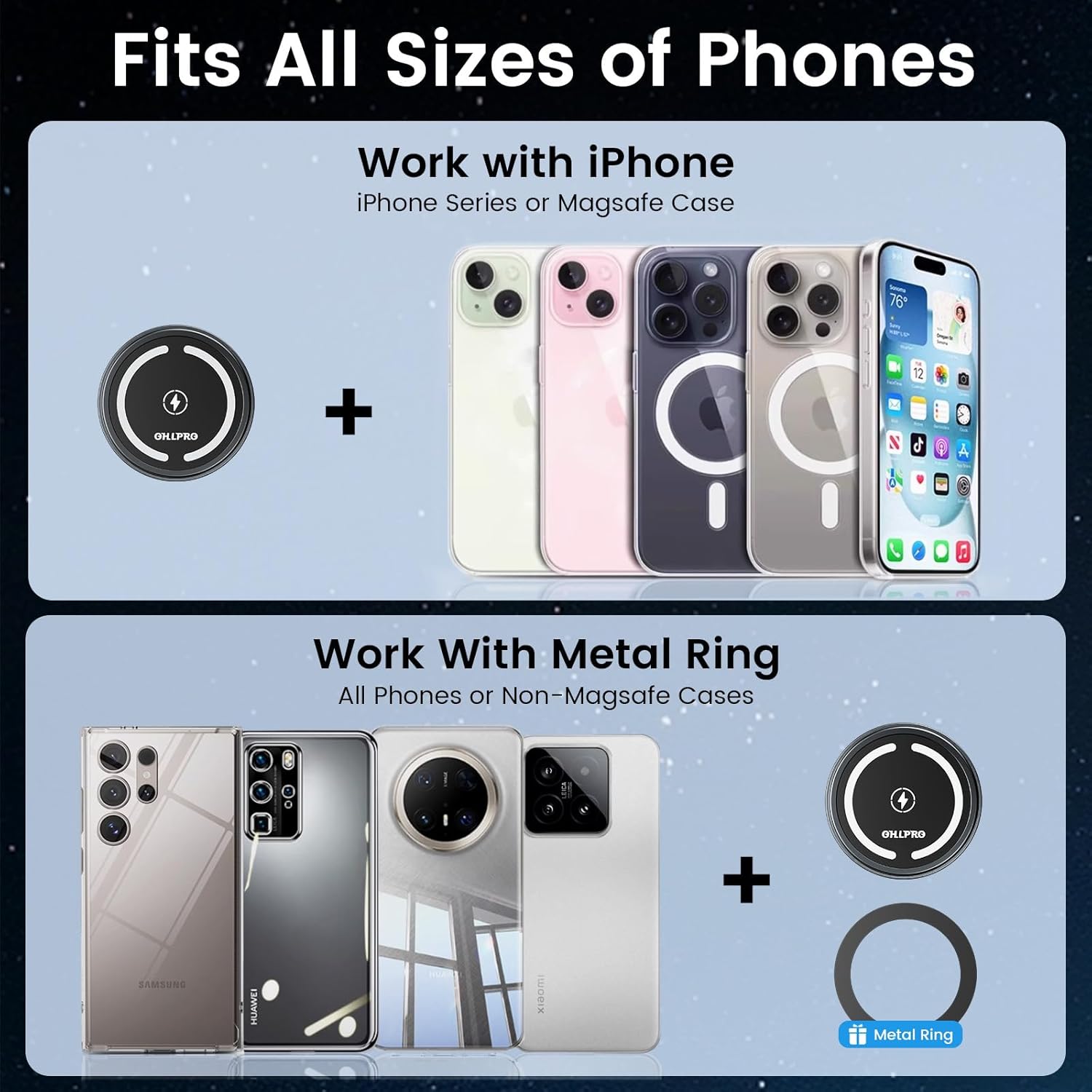 - Compatible Phone Models : for iPhone 16/16 Plus/16 Pro/16 Pro Max/iPhone 15/15 Plus/15 Pro/15 Pro Max/iPhone 14/14 Plus/14 Pro/14 Pro Max/iPhone 13/13 Pro/13 Pro Max/13 mini/iPhone 12 Pro Max / 12 Pro/ 12/ SE/ 11 Pro Max/ 11 Pro/ 11/ Xs/ Xs Max/ Xs/ XR/ X/ 8/ 8 Plus/ 7/ 7 Plus/ 6/ 6s, Samsung Galaxy Note 20/ S21/ S21+/ S21 Ultra 5G/ S20/ S20+/ Note10/ Note10+/ S10/ S10+/ S10e/ S9/ S8, LG Google OnePlus and all smartphones even with magsafe case for iPhone 16/16 Plus/16 Pro/16 Pro Max/iPhone 15/15 Plus/15 Pro/15 Pro Max/iPhone 14/14 Plus/14 Pro/14 Pro Max/iPhone 13/13 Pro/13 Pro Max/13 mini/iPhone 12 Pro Max / 12 Pro/ 12/ SE/ 11 Pro Max/ 11 Pro/ 1… See more
