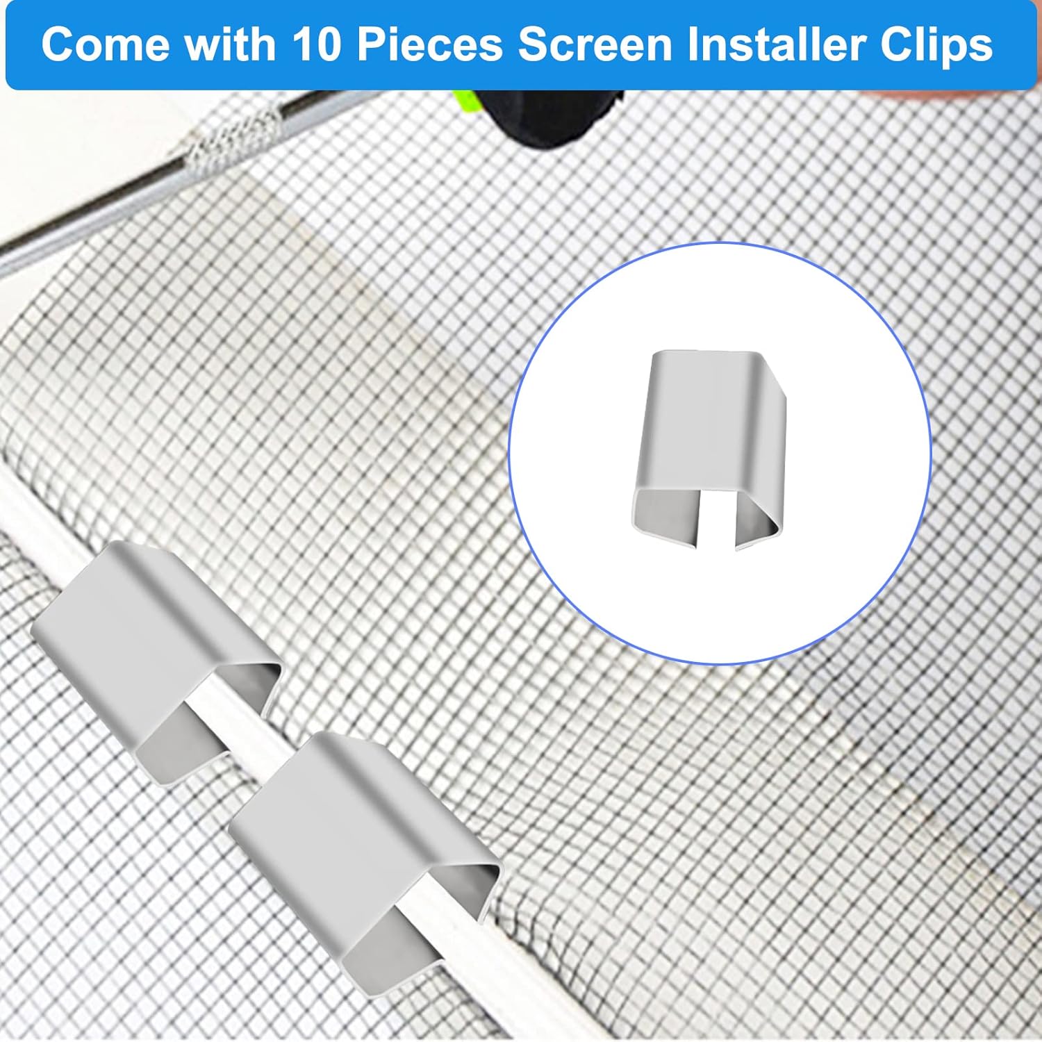 - 【Rescreening tool kit】:the screen tool set includes 1 metal screen rolling tool, 1 plastic screen roller, 1 brush, 1 screen remover hook and 10 pieces of installer clips. You will get all the fixing tools for your window screen totally, function and effective screen installing tool for your home and office.