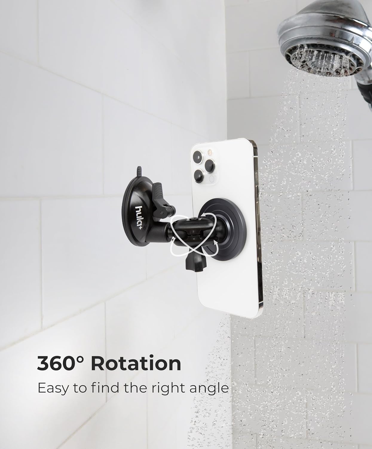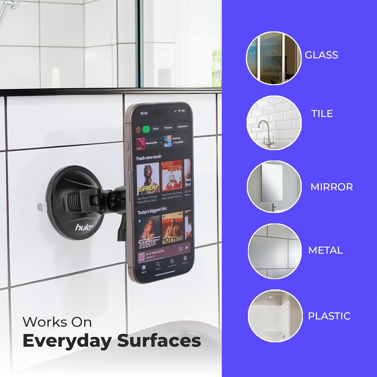hula+ MagSafe Phone Holder Portable Mount, Reusable Stand for Shower, Mirror, Kitchen, Window, & Bathroom Compatible with MagSafe Adjustable Rotation for Content, TikTok, Movies & Music