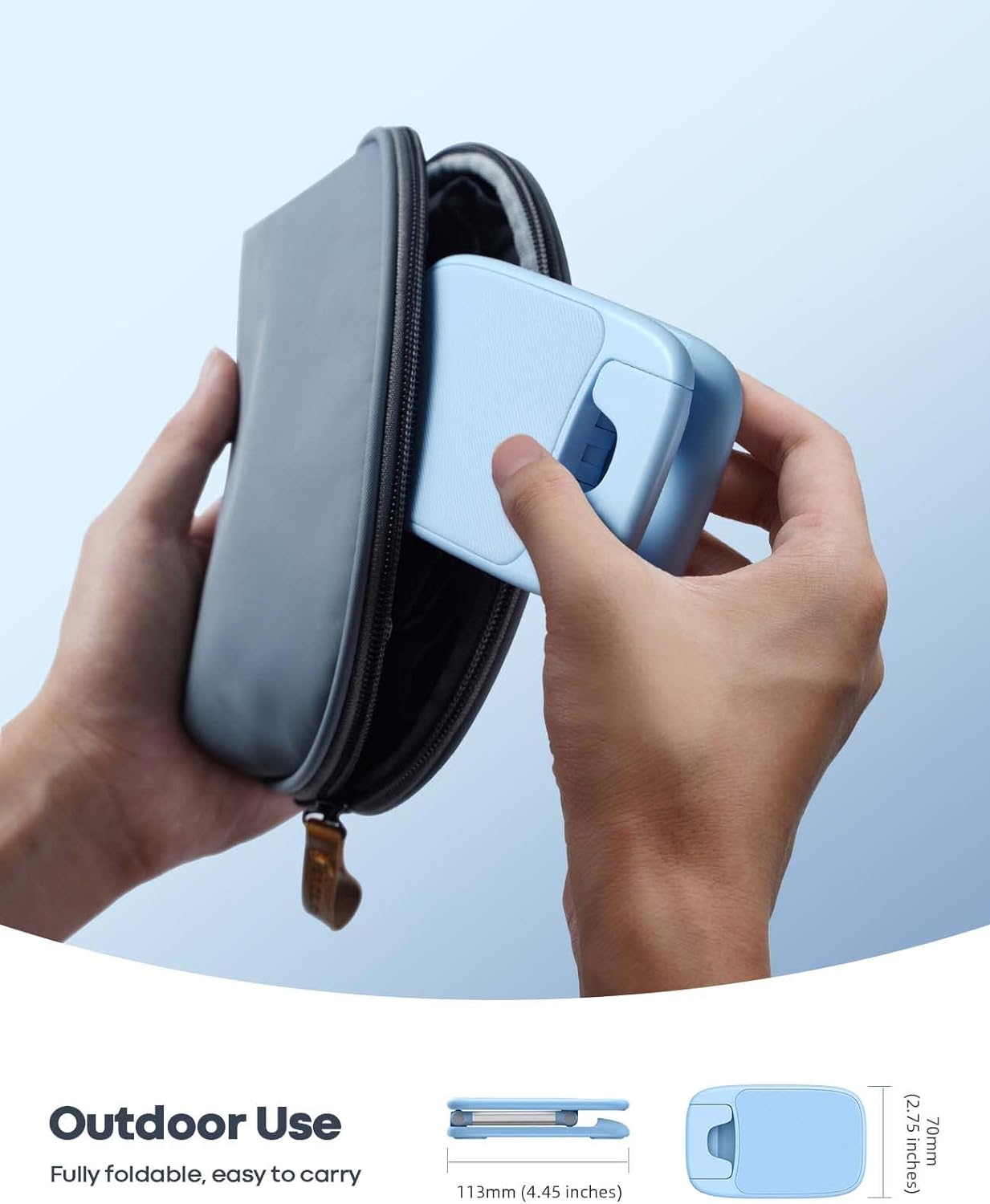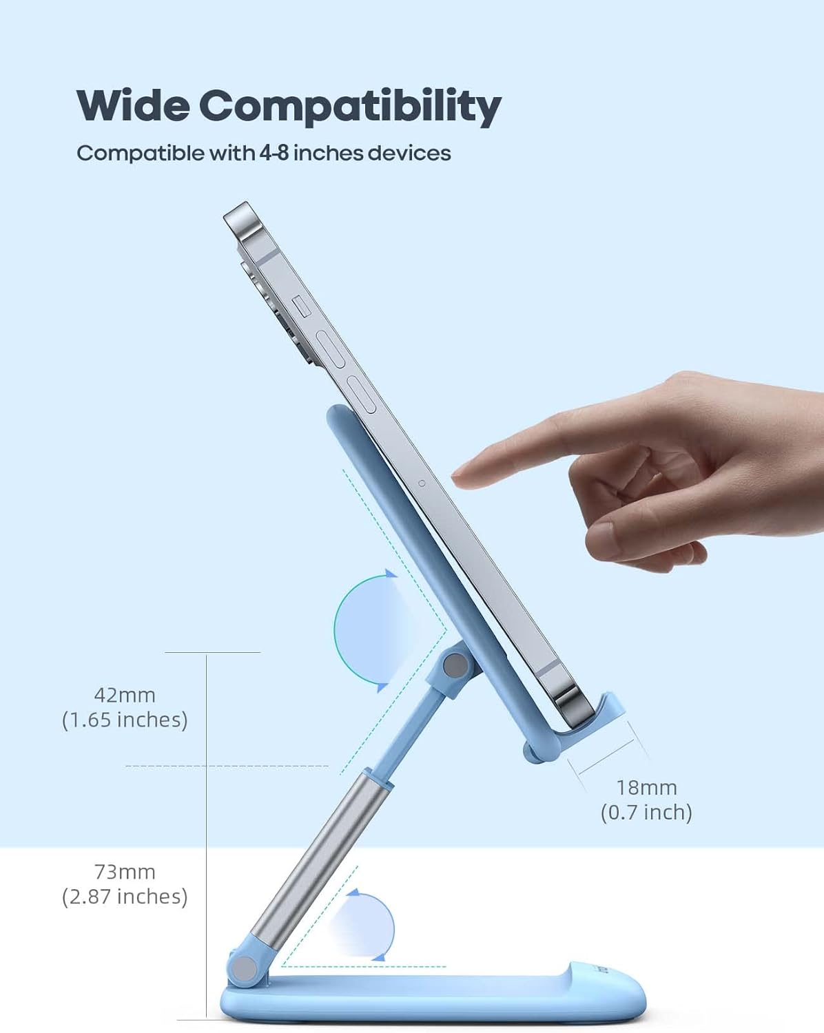 - Full Foldable & Portable - This blue phone stand is easy to carry. Bi-folding design allows this foldable mobile stand to be pocket-sized. Simply fold it up to a small size anytime and carry around into a handbag, backpack wherever you travel or business trip.