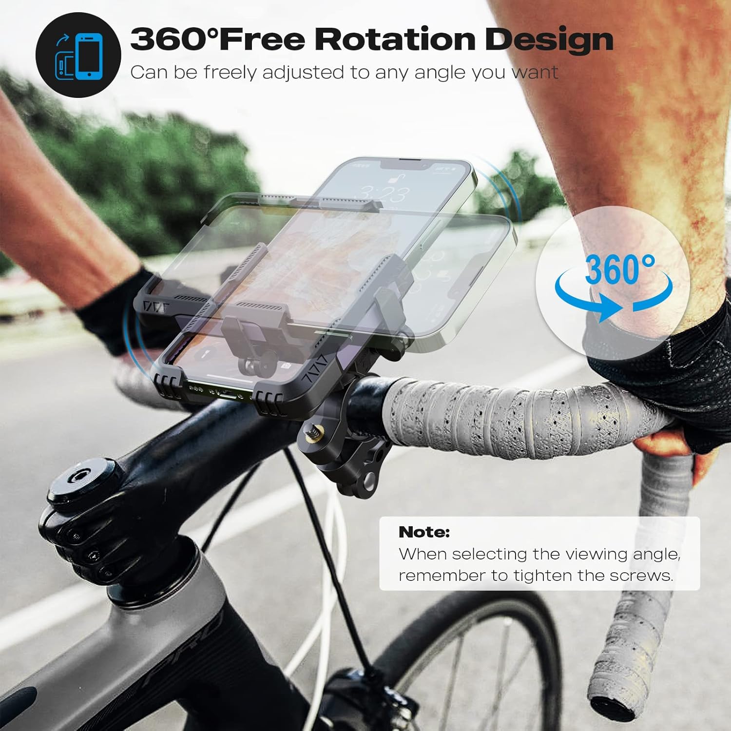 - Quick Installation: Iphone bike mount can be easily installed on your bicycle handlebars without tools. Just tighten the mounting screws to fix the motorcycle phone mount on the handlebar,Rotate the bracket adjustment button to fit the size of the phone, and then close the quick switch to lock. (Note: Leave enough space to avoid damaging the phone