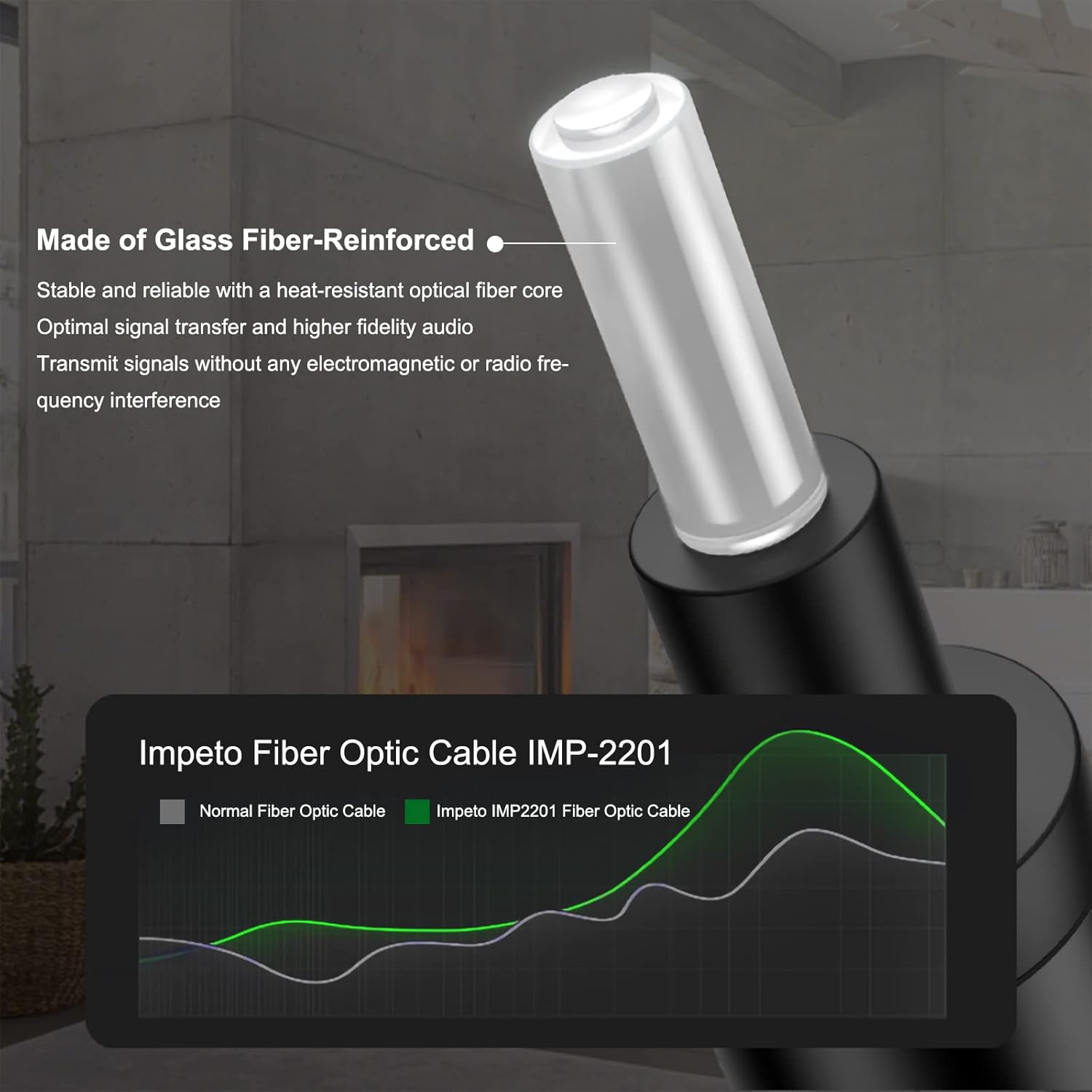- Optical Fiber Core with Enhanced Durability - The IMP-2201 Digital Optical Cable incorporates a high-purity, glass fiber-reinforced optical core, engineered for superior signal transmission with minimal attenuation. This heat-resistant optical fiber ensures stable and reliable performance, making it ideal for high-fidelity audio applications across various soundbars and home theater systems.