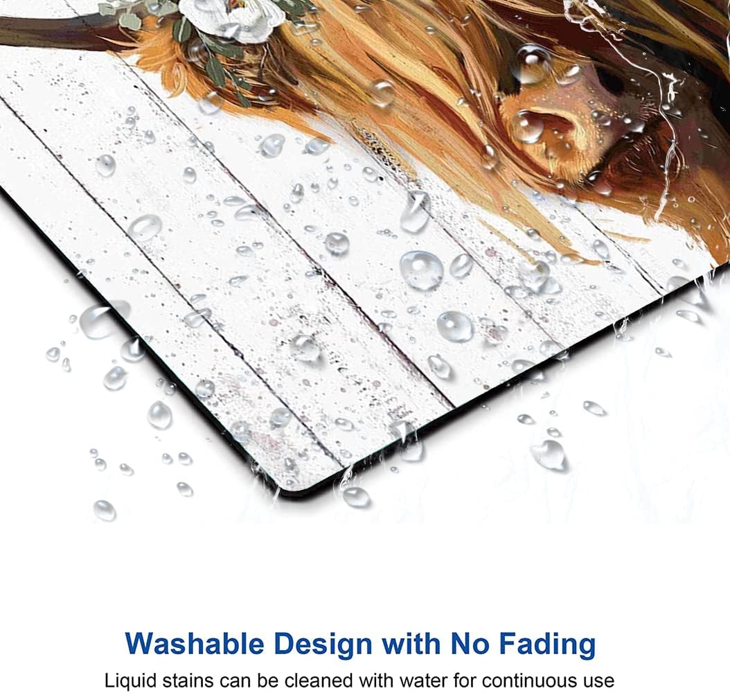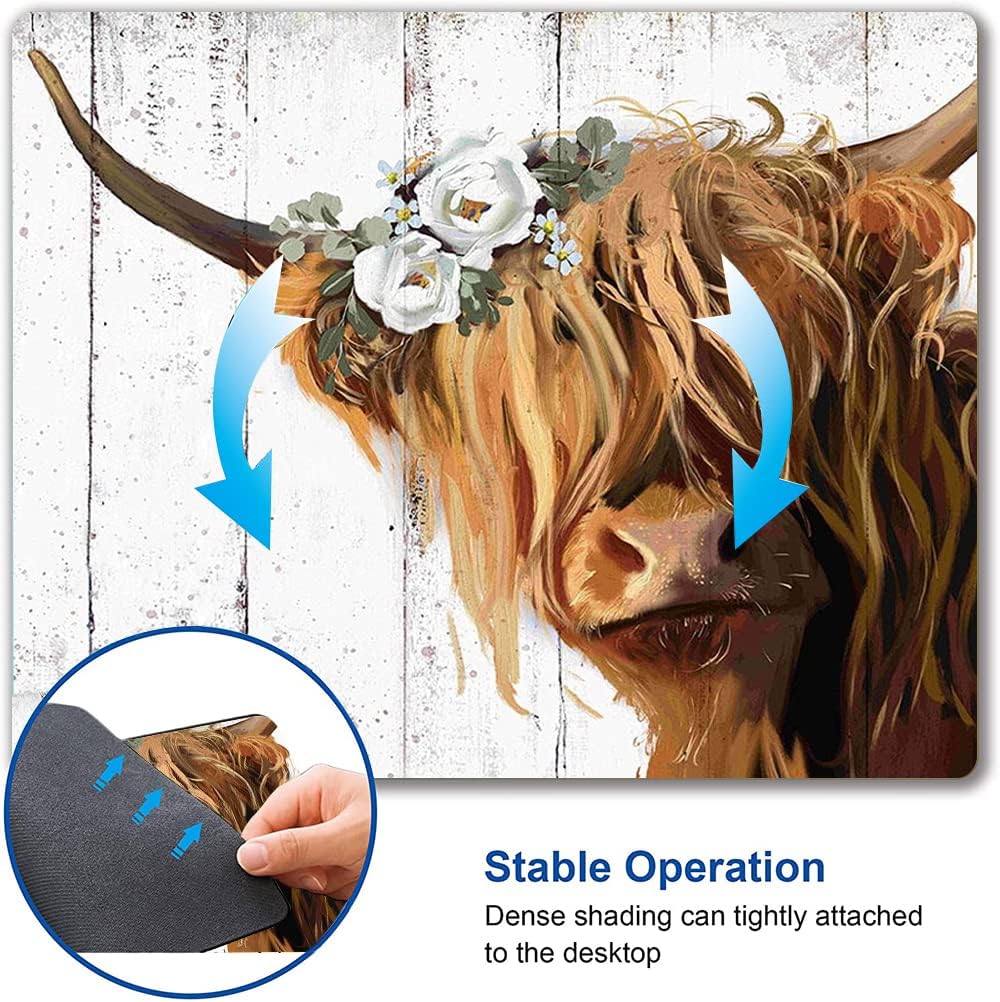 Floral Mouse Pad, Cute Flowers Mouse Pad, Square Mouse Mat Waterproof Mousepad Non-Slip Rubber Base Mouse Pads for Office Laptop Women, Cow