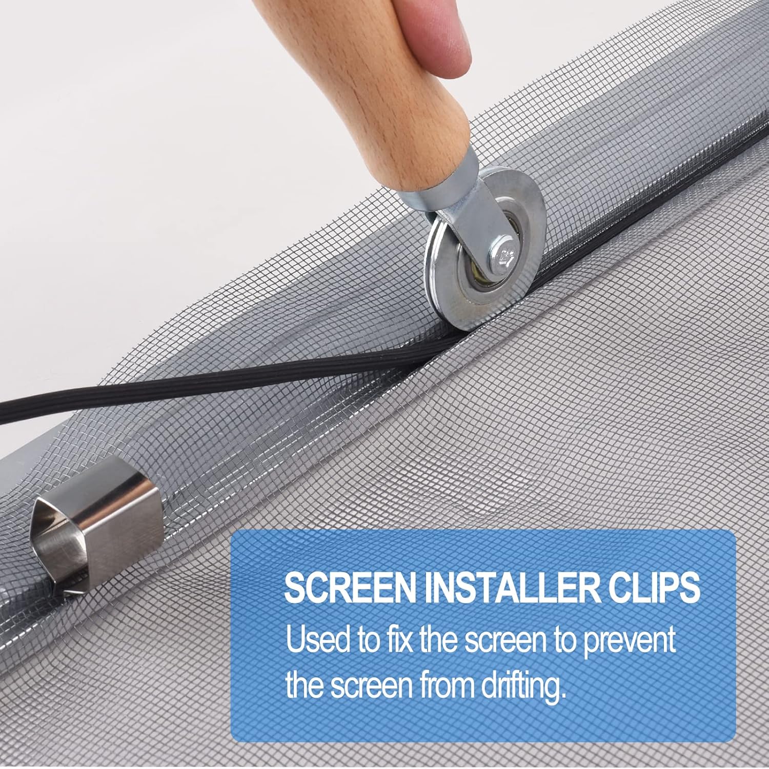 - 12PCS HOLDER SCREEN CLIPS & 32FT SPLINE: Made from Stainless steel, the screen holder clips have nice flexibility and smooth touch, together use with the screen spline, can quickly install screen in window slots and keep the screen fixed firmly. 32ft spline and 12pcs reusable holder clips are enough to satisfy larger screens.