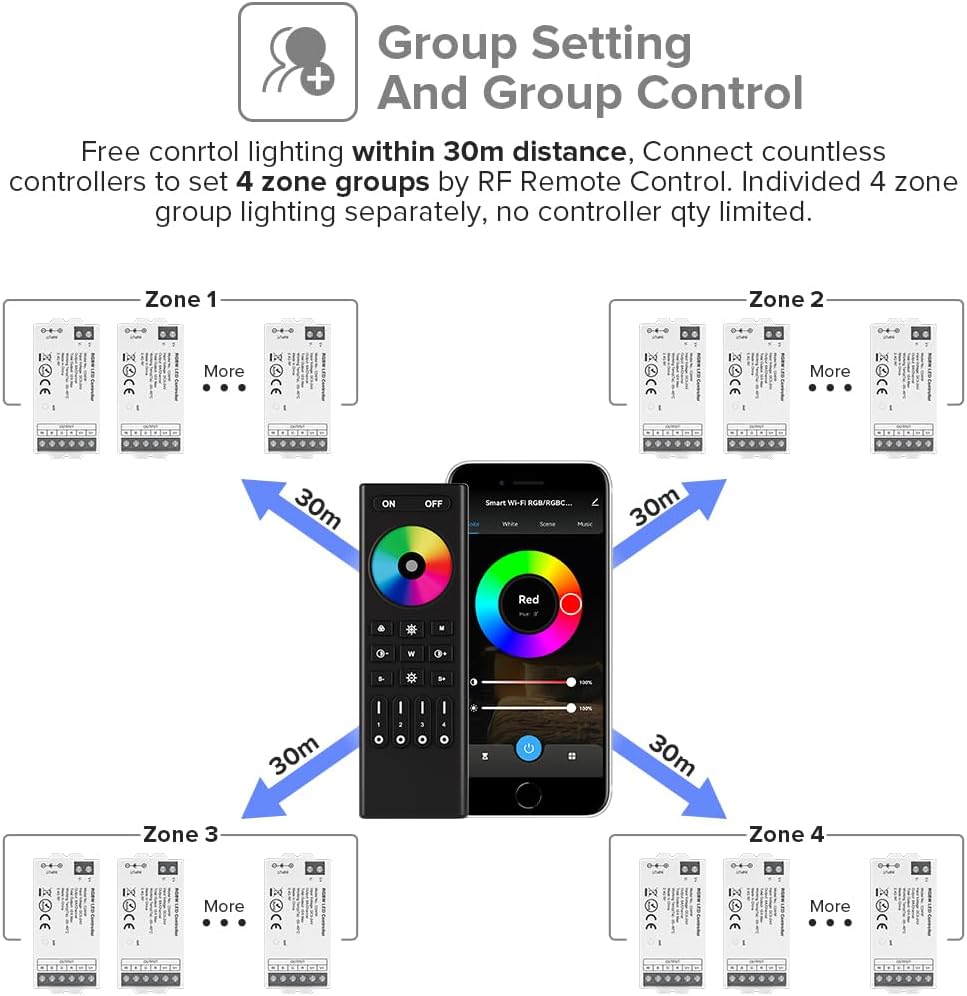 - ăSuitable For The Projectă1.Multi zone control,Multiple controllers required. 2.Need 2.4GHz RF Remote or TuyaSmart SmartLife APP WiFi Control. 3. No need Bluetooth or WiFi. 4.Need Alexa or Google home third party voice control. 5.Cost effective LED project.