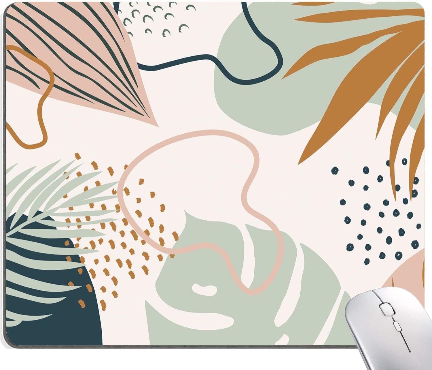Mouse Pad, Boho Abstract Mouse Pad, Premium-Textured Square Mouse Mat Waterproof Non-Slip Rubber Base Computer Mousepad for Office Laptop Desk, Modern Tropical Leaves