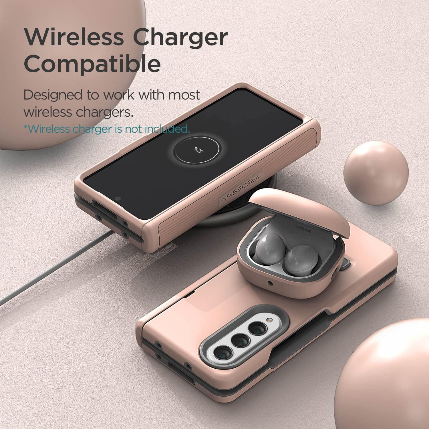 VRS DESIGN Terra Guard Modern for Galaxy Z Fold 4 5G (2022), Premium Modern Neat Style [Anti Scratch Hinge Protection] Case with Tempered Glass Screen Protector (Pink Sand)