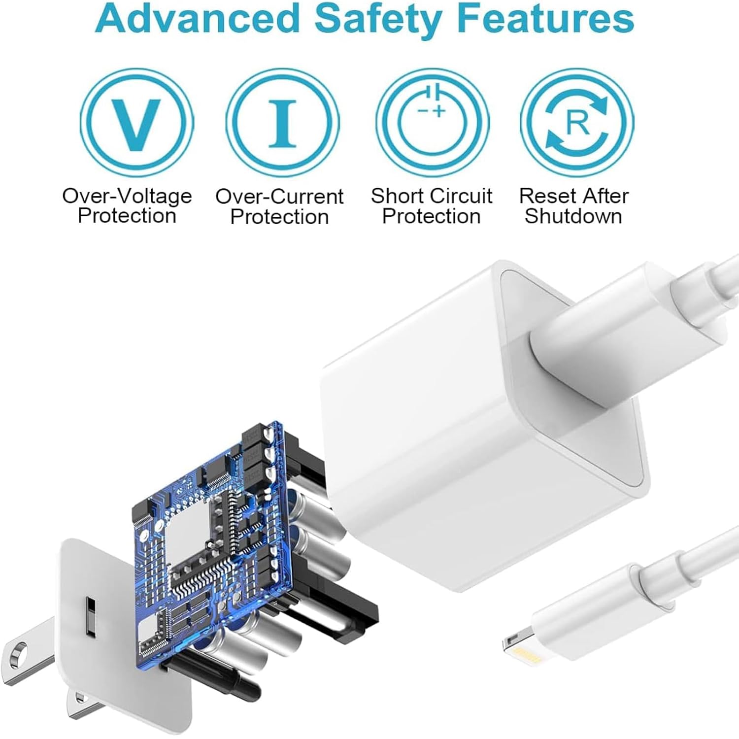 - [ iPhone Charger with USB Wall Plug ] MFI Certification Made with original Chip, full support with iOS versions,pull-resistance, fast charging, and transmission speed certification ensures complete charge and sync compatibility with your iPhone/iPad devices to ensures stable performance and strong adaptability