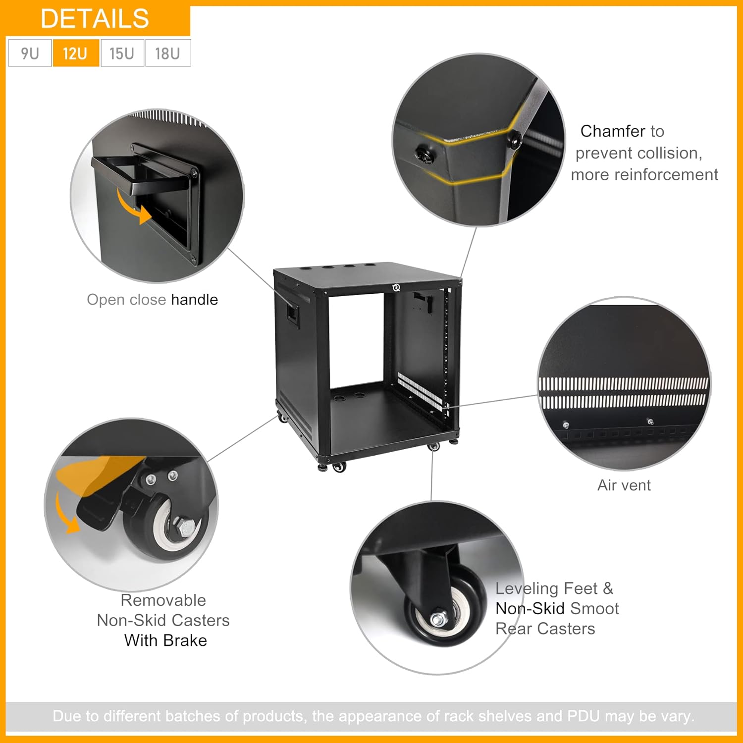 - EASY TO INSTALL: Comes with a 19" universal 12 u rack, relevant mounting screws, casters, leveling feet and a detailed assembling instruction. It's easy to install and you will get an ideal functional rack within a few moments