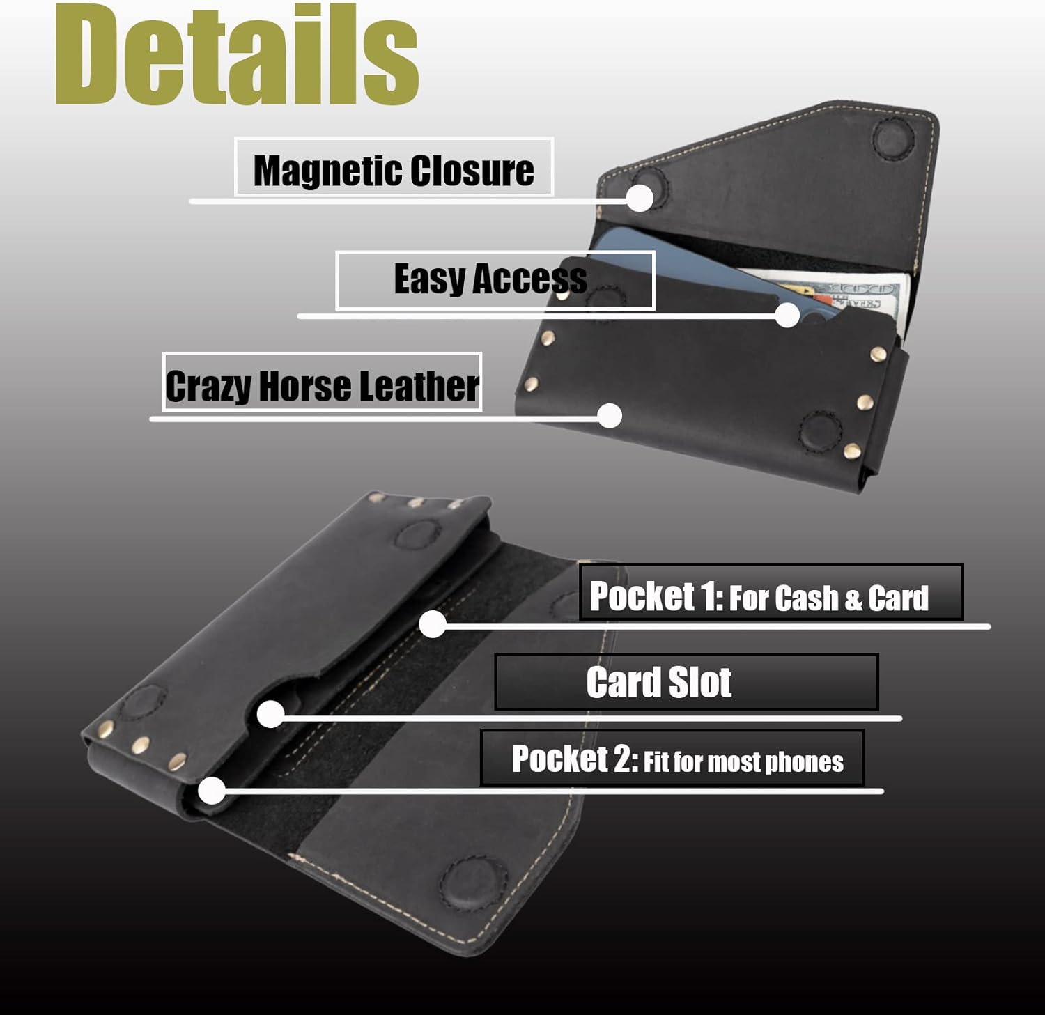 - ➤Premium Material Better Workmanship:This leather cell phone case is handcrafted from premium natural leather, fine and tight stitching.Crazy Horse Leather is Easy to clean, scratch resistant, thick and long-lasting, the color of the surface will gradually change and become unique over time.Made of natural leather for long-lasting use. All-around leather protection completely wraps around your phone, protecting it from dust to prevent screen scratches and daily wear and tear.