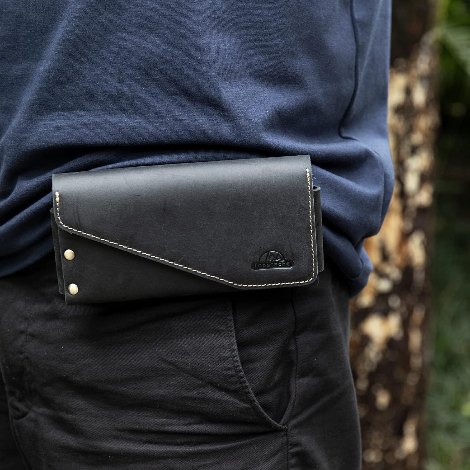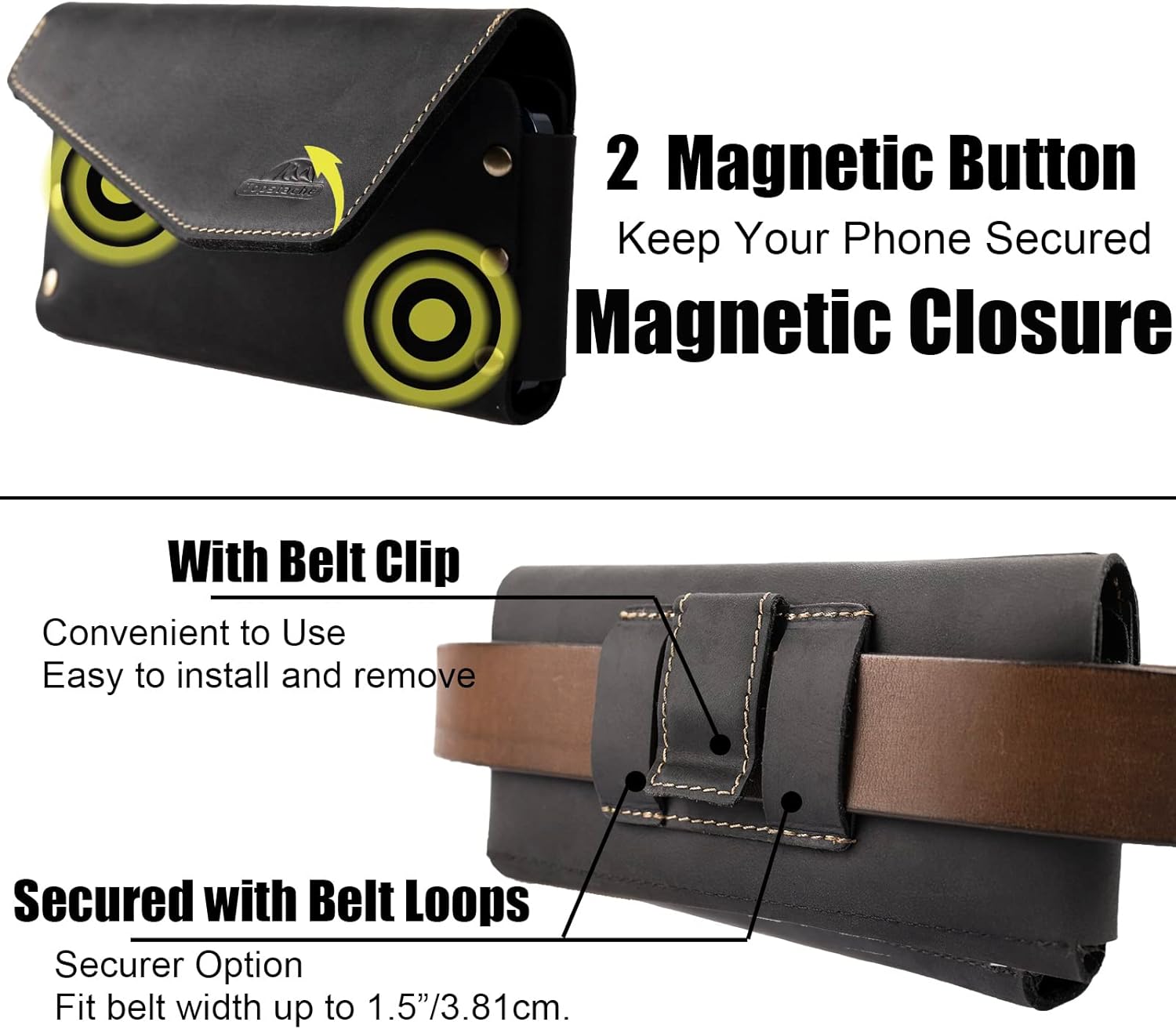 Topstache Leather Phone Holster with Belt Clip,S22 Ultra Belt Holder,iPhone 14 Pro Max Case for Belt,Leather Belt Pouch for Universal Smartphone with Protective Case,Flip Cellphone Pouch,XL,Black