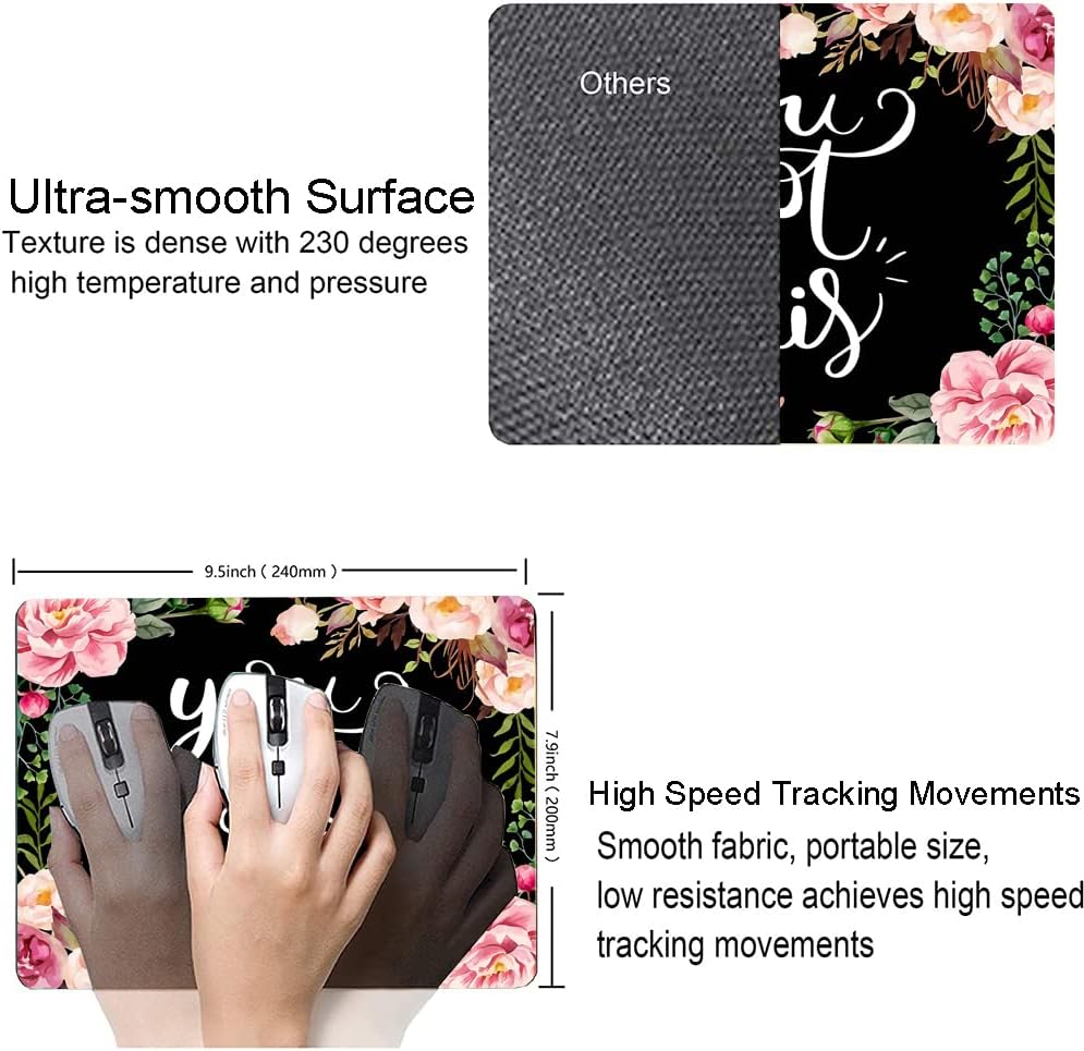 Mouse Pad, Premium-Textured Mouse Mat, Non-Slip Rubber Base Mousepad for Laptop, Computer & PC,9.5×7.9 in,Inspirational Quote You Got This