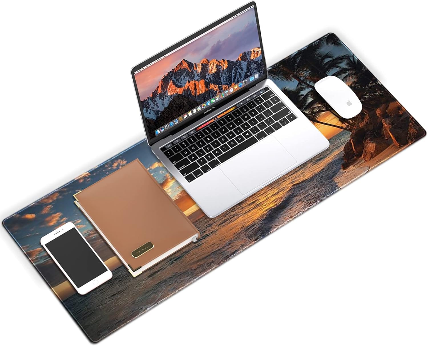 Galdas Gaming Mouse Pad XXL XL Large Mouse Pad Mat Long Extended Mousepad Desk Pad Non-Slip Rubber Mice Pads Stitched Edges Thin Pad (31.5x11.8x0.12 Inch)-Sunset Beach