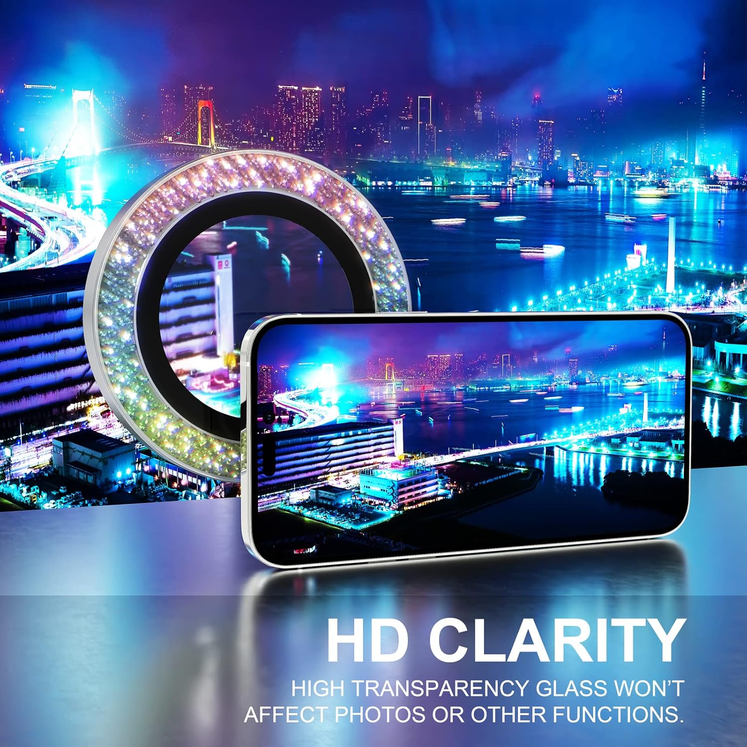 - Personalized Decoration: Made of high-quality aviation aluminum metal ring and 9H tempered glass and inlaid with bling rhinestones to give your iPhone 14 Pro/Pro Max camera lens a diamond gorgeous appearance, shining in the sun, very eye-catching and complimentary.