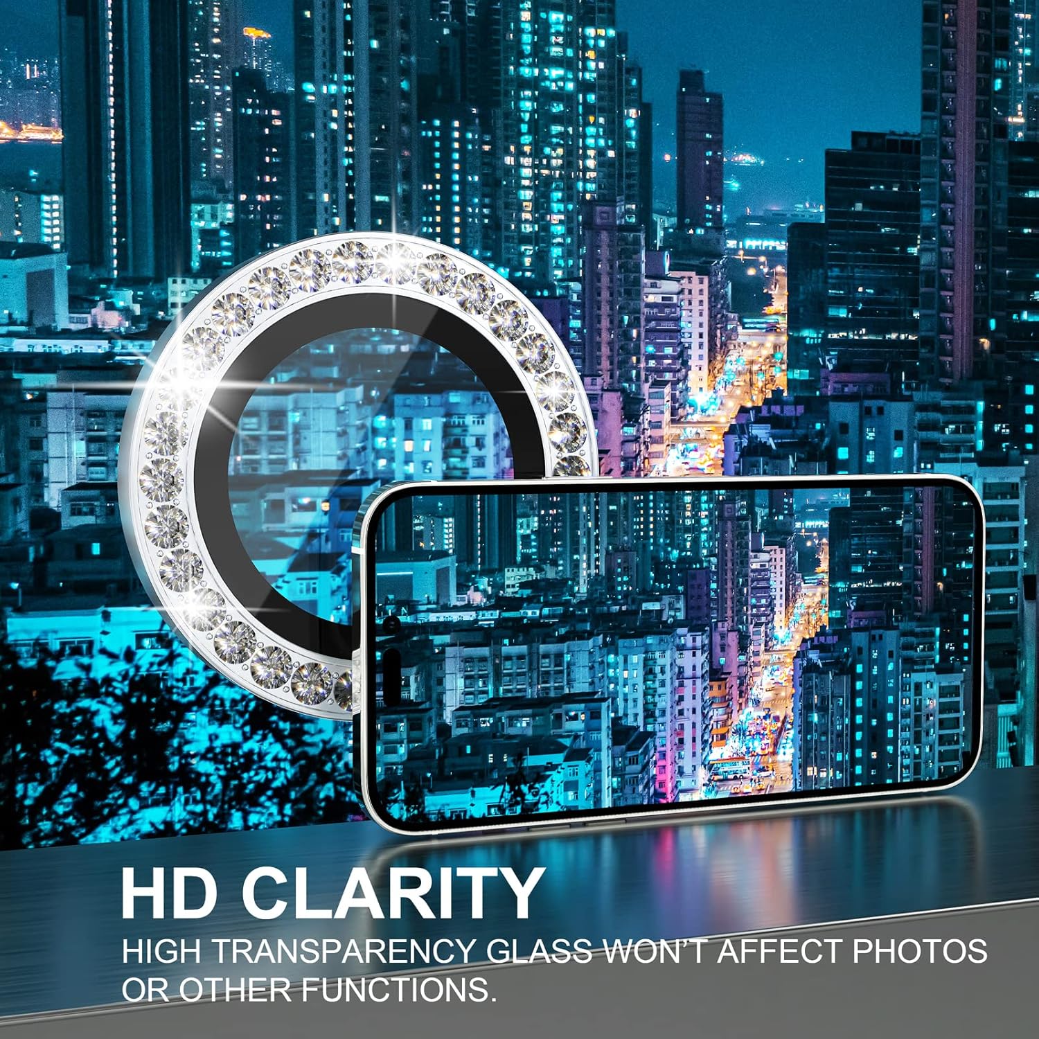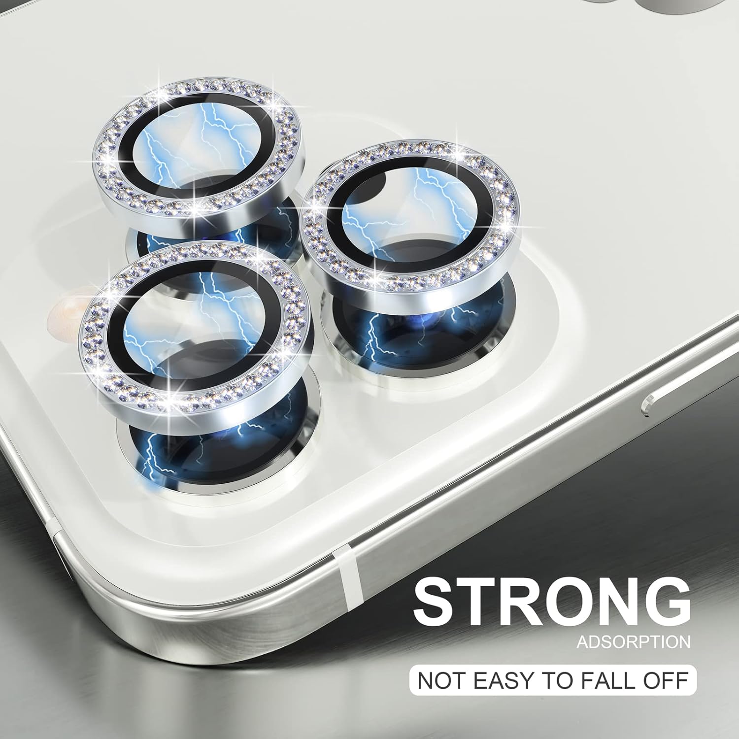 - Personalized Decoration: Made of high-quality aviation aluminum metal ring and 9H tempered glass and inlaid with bling rhinestones to give your iPhone 14 Pro/Pro Max camera lens a diamond gorgeous appearance, shining in the sun, very eye-catching and complimentary.