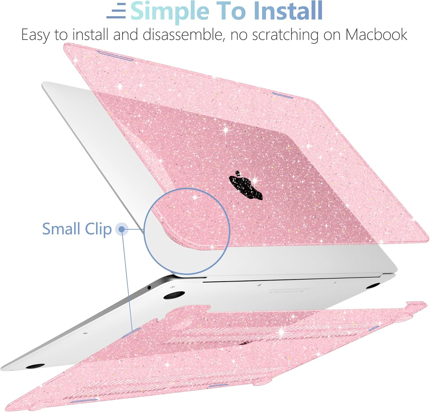 MEEgoodo Case for MacBook Air 13 inch 2021 2020 2019 2018 Released A2337 M1 A2179 A1932 with Touch ID, Thin Soft PC Hard Shell with Keyboard Cover Compatible with MacBook Air Case 13.3, Glitter Pink