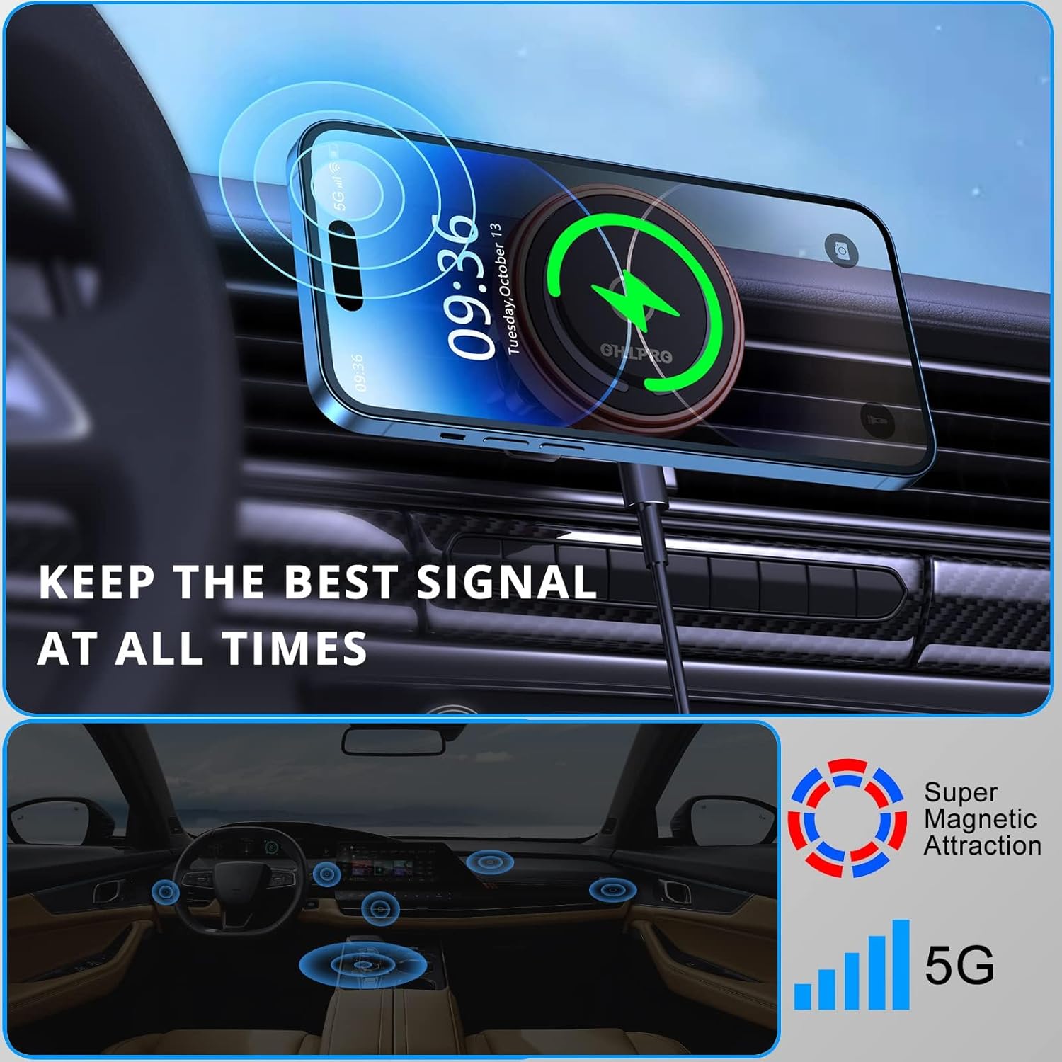 - 【What's Included & Worry-Free】You can get: 1×Magsafe Car Charger mount, 1×air vent clip, 1×3M sticker, 1×Metal Plate, 1×1m USB-A to USB-C cable, 1×user manual. Any problem, you can contact us, OHLPRO provides at least 36 month s of user service.