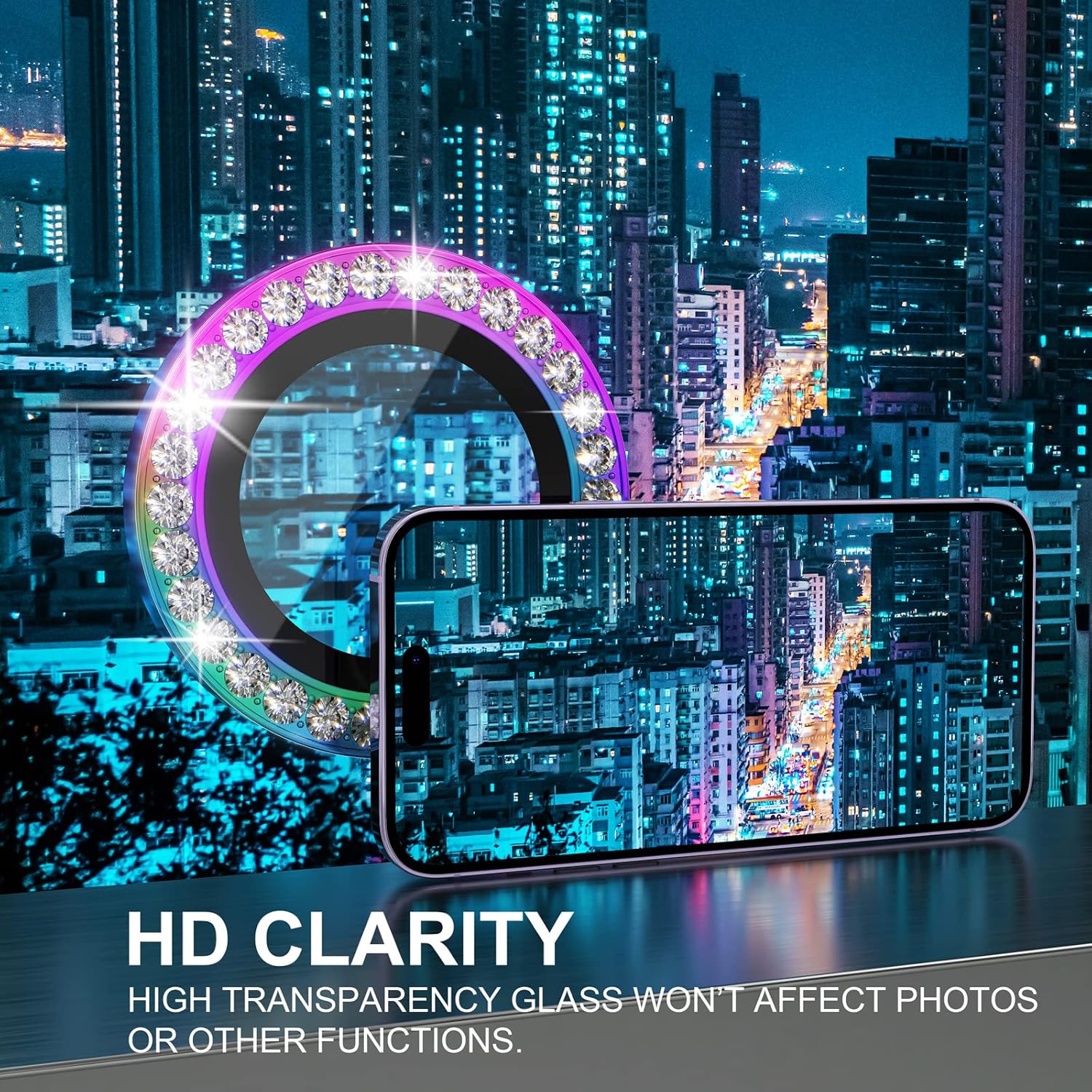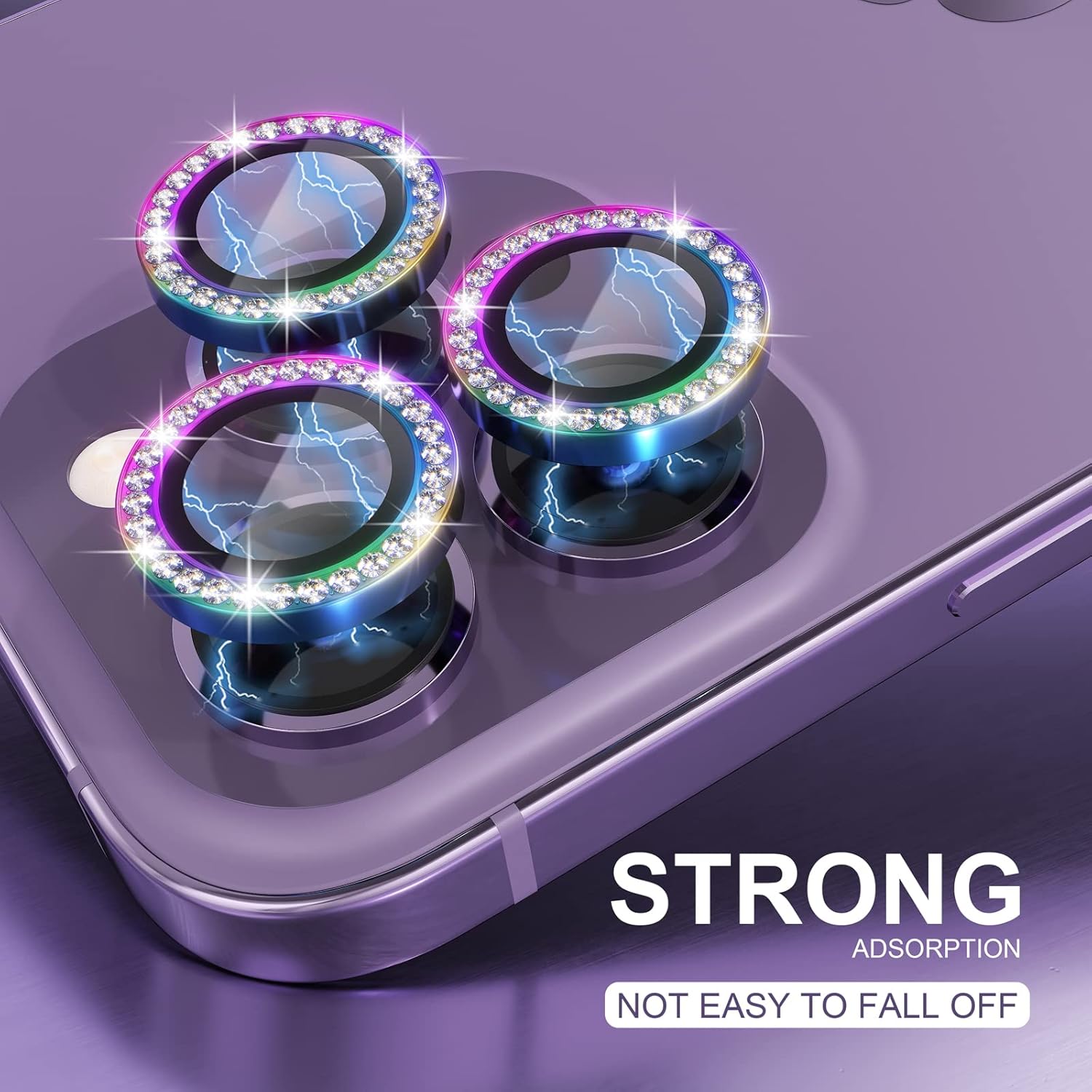 - Personalized Decoration: Made of high-quality aviation aluminum metal ring and 9H tempered glass and inlaid with bling rhinestones to give your iPhone 14 Pro/Pro Max camera lens a diamond gorgeous appearance, shining in the sun, very eye-catching and complimentary.