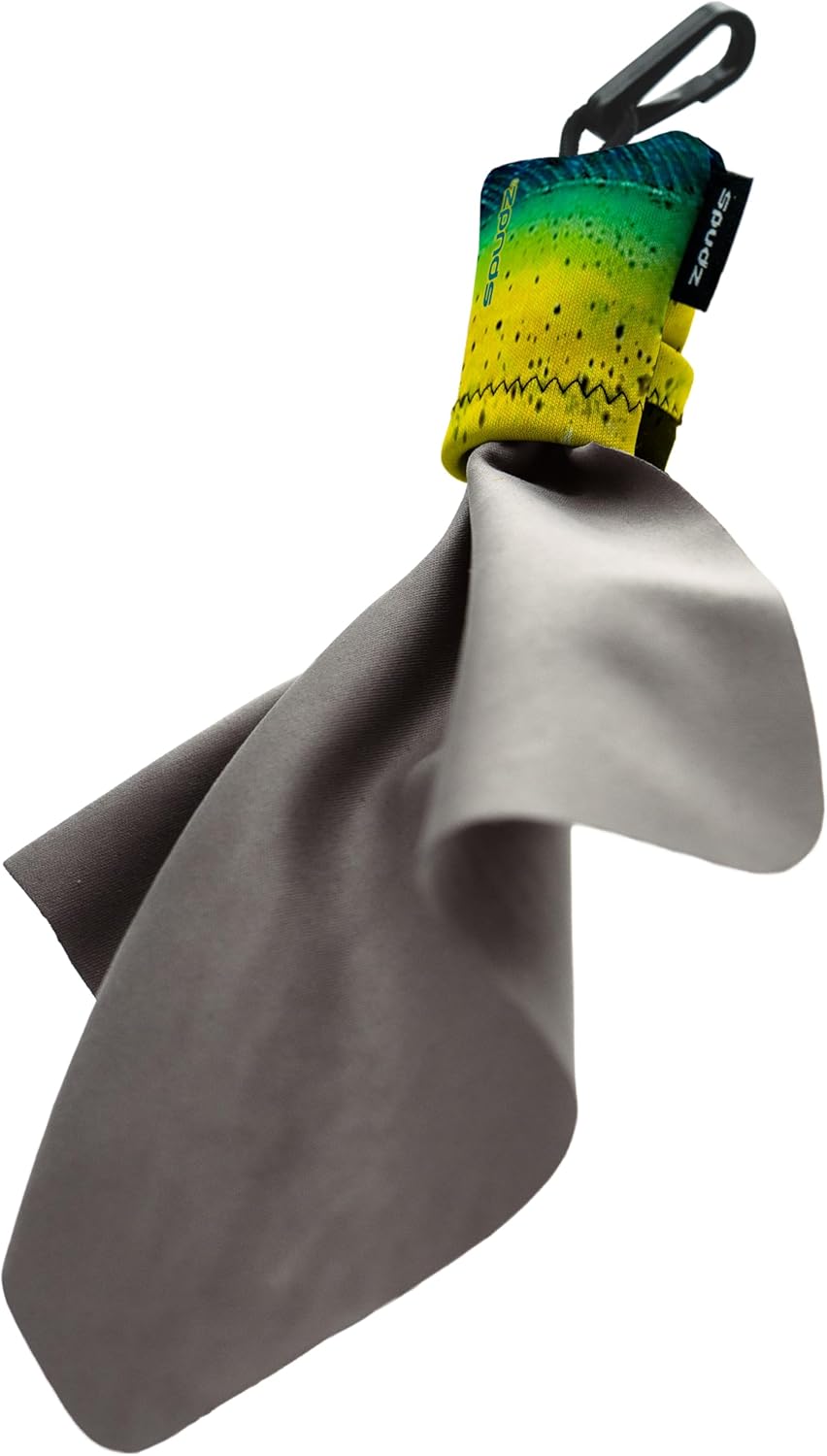 SPUDZ Ultra Microfiber Lens Cleaner – Closable Pouch, Clip-On, Washable – for Optics, Scopes, Glasses | Mahi Mahi, 6 x 6 Inch