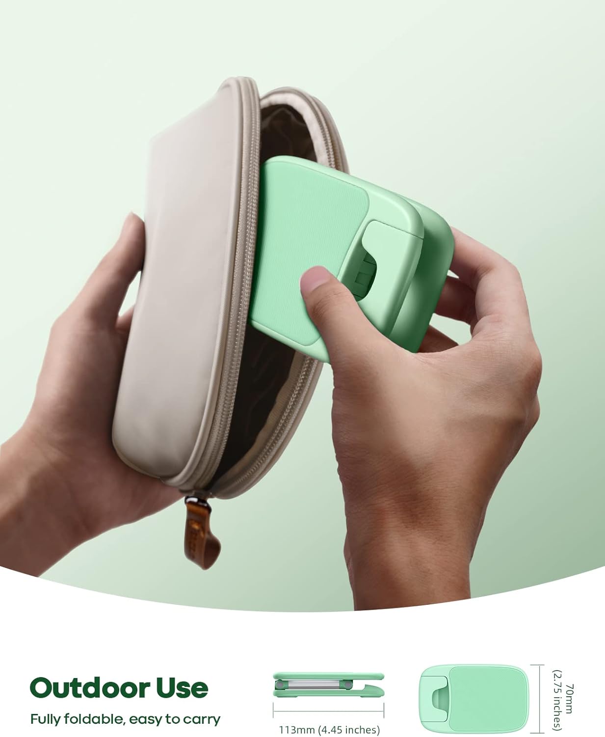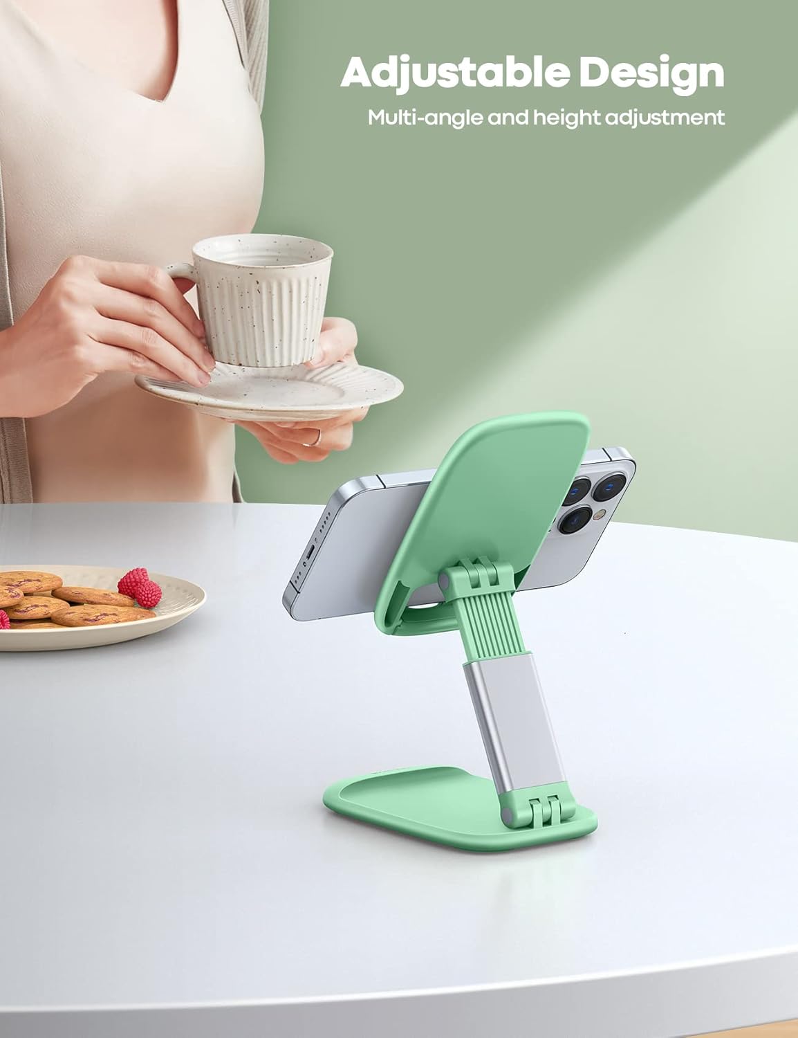 - Full Foldable & Portable - This green phone stand is easy to carry. Bi-folding design allows this foldable mobile stand to be pocket-sized. Simply fold it up to a small size anytime and carry around into a handbag, backpack wherever you travel or business trip. Necessary green desk accessories & workspace organizers, green office supplies, green cell phone accessories.