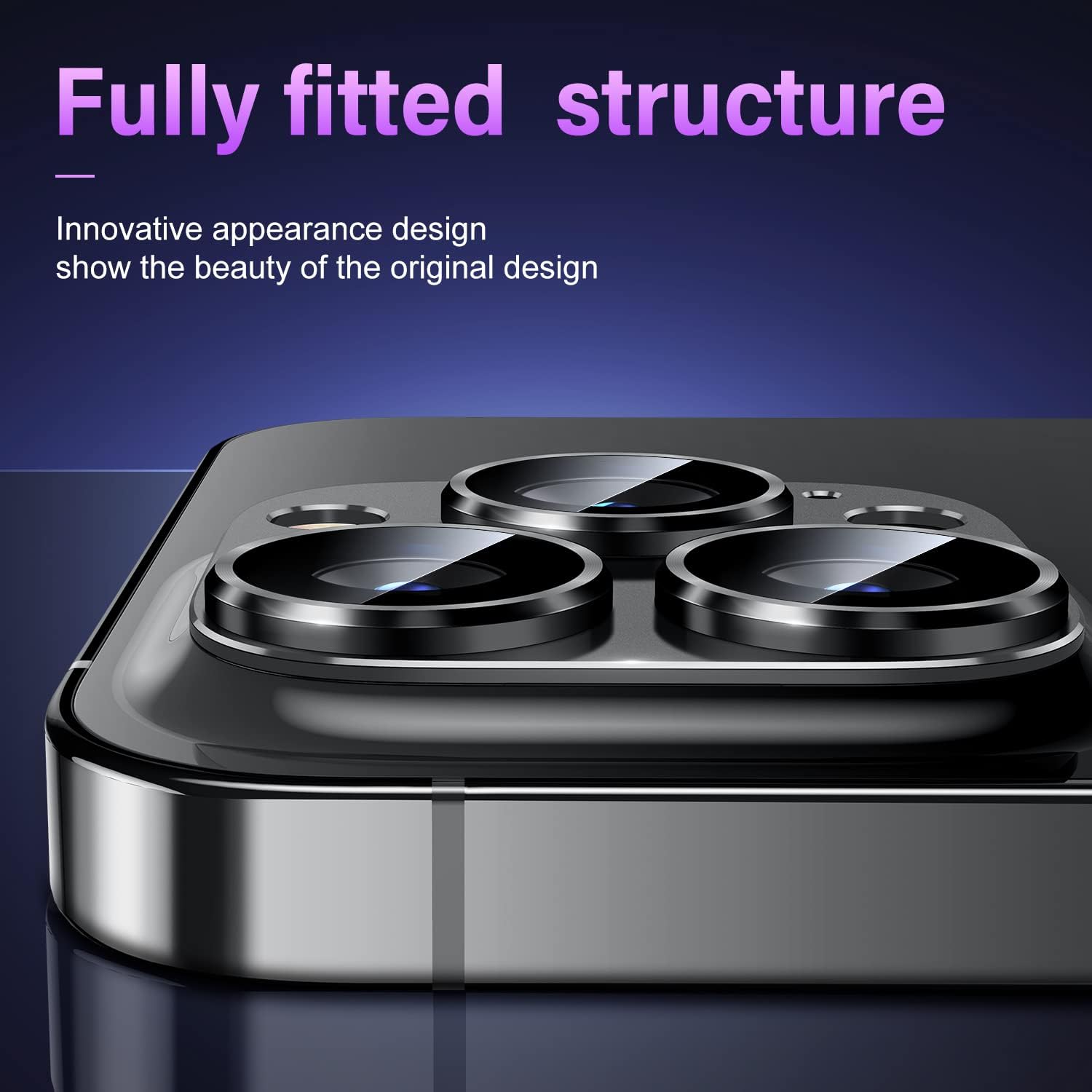 Uyiton for iPhone 14 Pro/iPhone 14 Pro Max Camera Lens Protector, [Drop Protection] 9H Tempered Glass Camera Cover Screen Metal Ring Case Friendly Scratch Resistant Easy to Install - Black