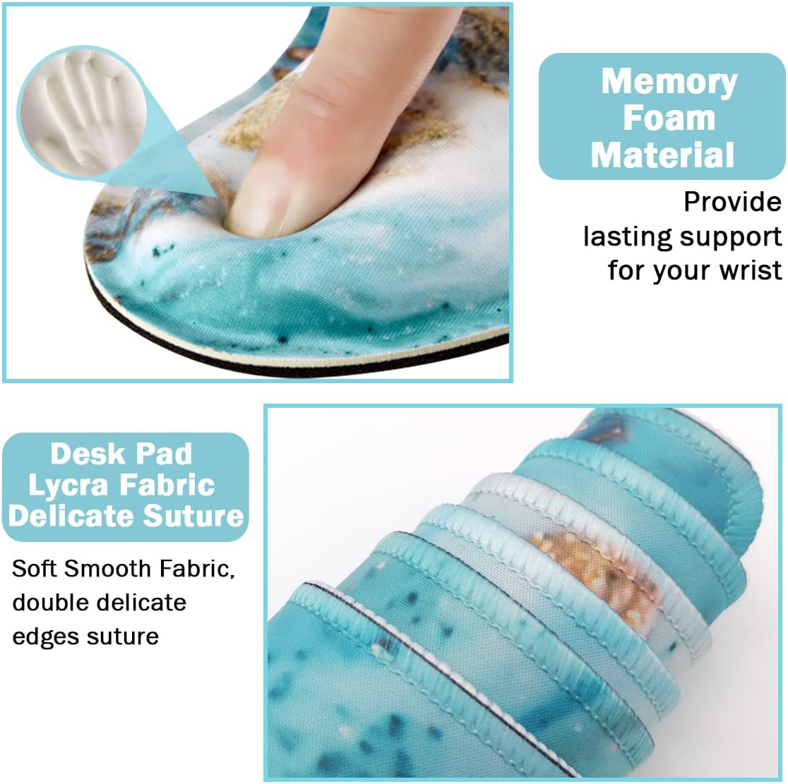 Keyboard Mouse Pad Set, Extended Mouse Pad+Keyboard Wrist Rest Support, Memory Foam Ergonomic Easy Typing, 3Pcs (35.4×15.7 in) Desk Pad Set for Home Office Study Game-Green Marble