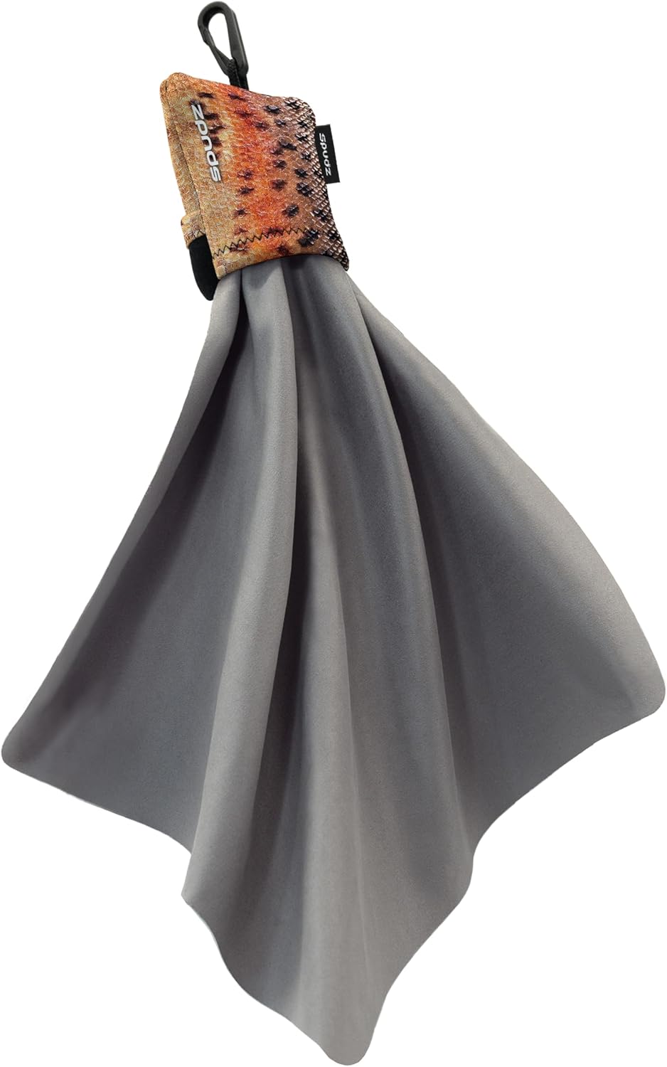 SPUDZ Ultra Microfiber Lens Cleaner – Closable Pouch, Clip-On, Washable – for Optics, Scopes, Glasses | Trout Skin, 10 x 10 Inch