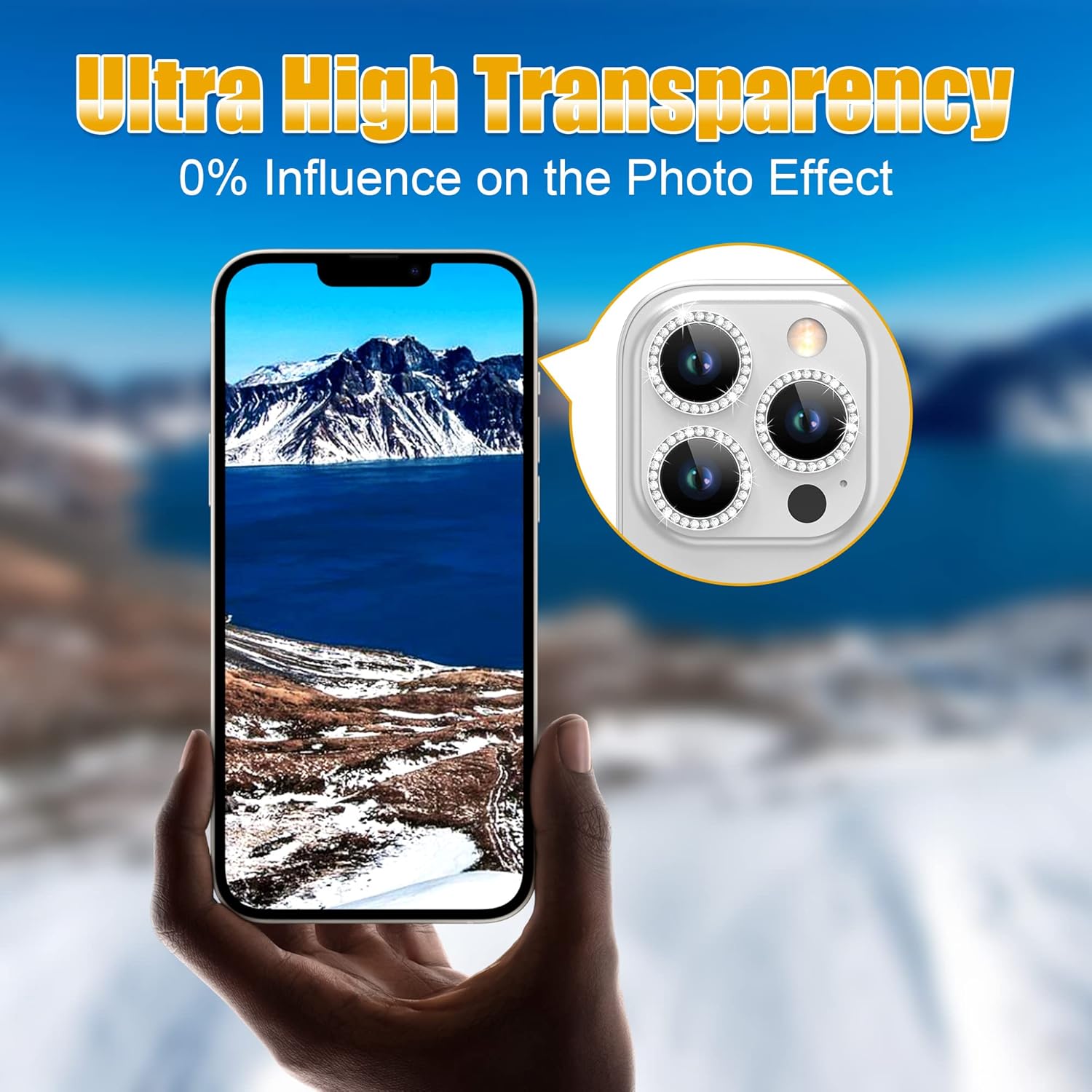 - ā[Two Bling Effects] There are 3 bling diamond rings and 3 bling glitter rings in the package. Free to match according to your own personal preferences. These rings glass are optical grade, protect your iPhone 13 Pro / 13 Pro Max camera lens from damage and scratches and has no effect on taking photos. Fully high transmittance sapphire glass with AR anti-reflection function: Camera anti-fall protection and Bling Bling Effect and Fully restored image quality.