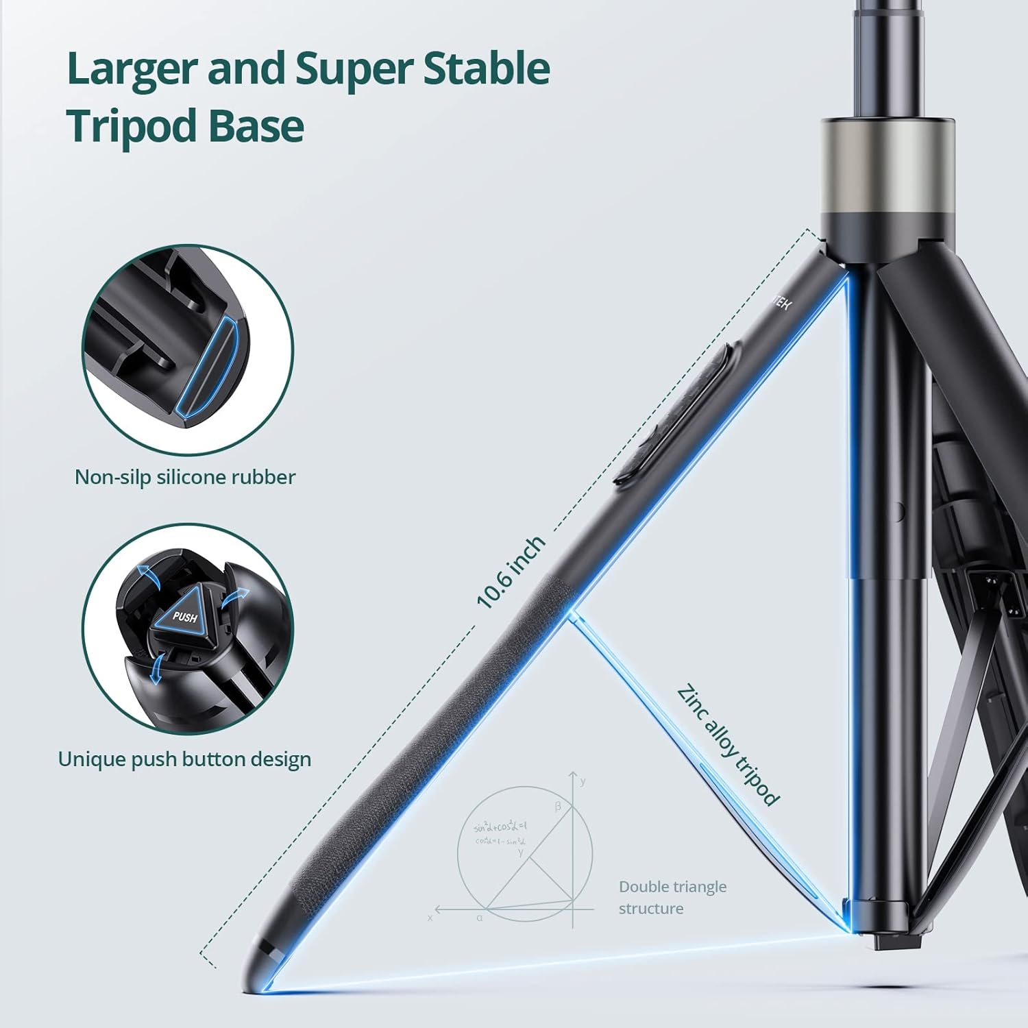 - [Easy to Grip and Compact] The selfie stick and tripod are retractable in one piece, easy to store and carry. The handle is designed with a lychee texture in an ergonomic shape for easy grip.