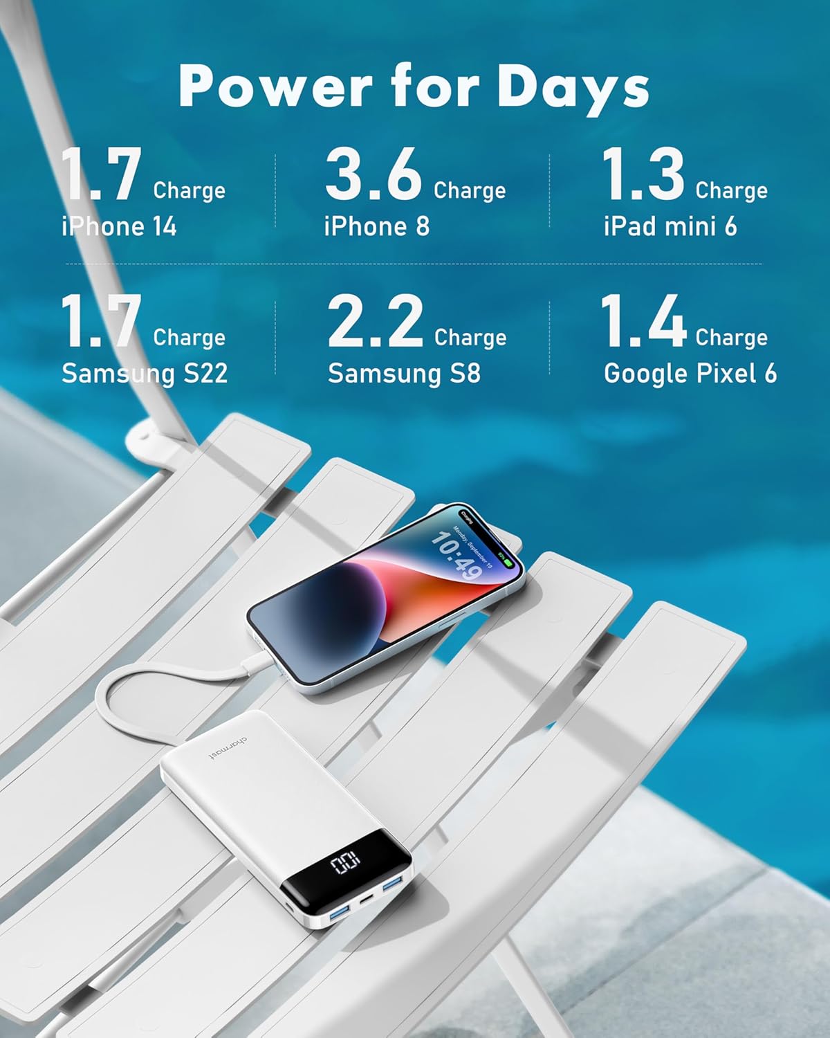 - 【Essential for Everyone, especially for Students】The smart choice for everyone, especially for students! This slim, cable-included power bank easily fits in backpacks or dorm rooms, providing ample power for your phone, tablet, or e-reader during classes, study sessions, or weekends. Great value for essential charging needs.