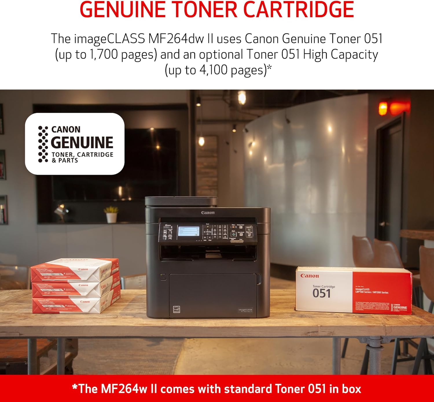 - Uses Canon Genuine Toner 051 / 051 High Capacity Toner - high capacity toner option keeps up with your printing needs and limits toner replacement interruptions