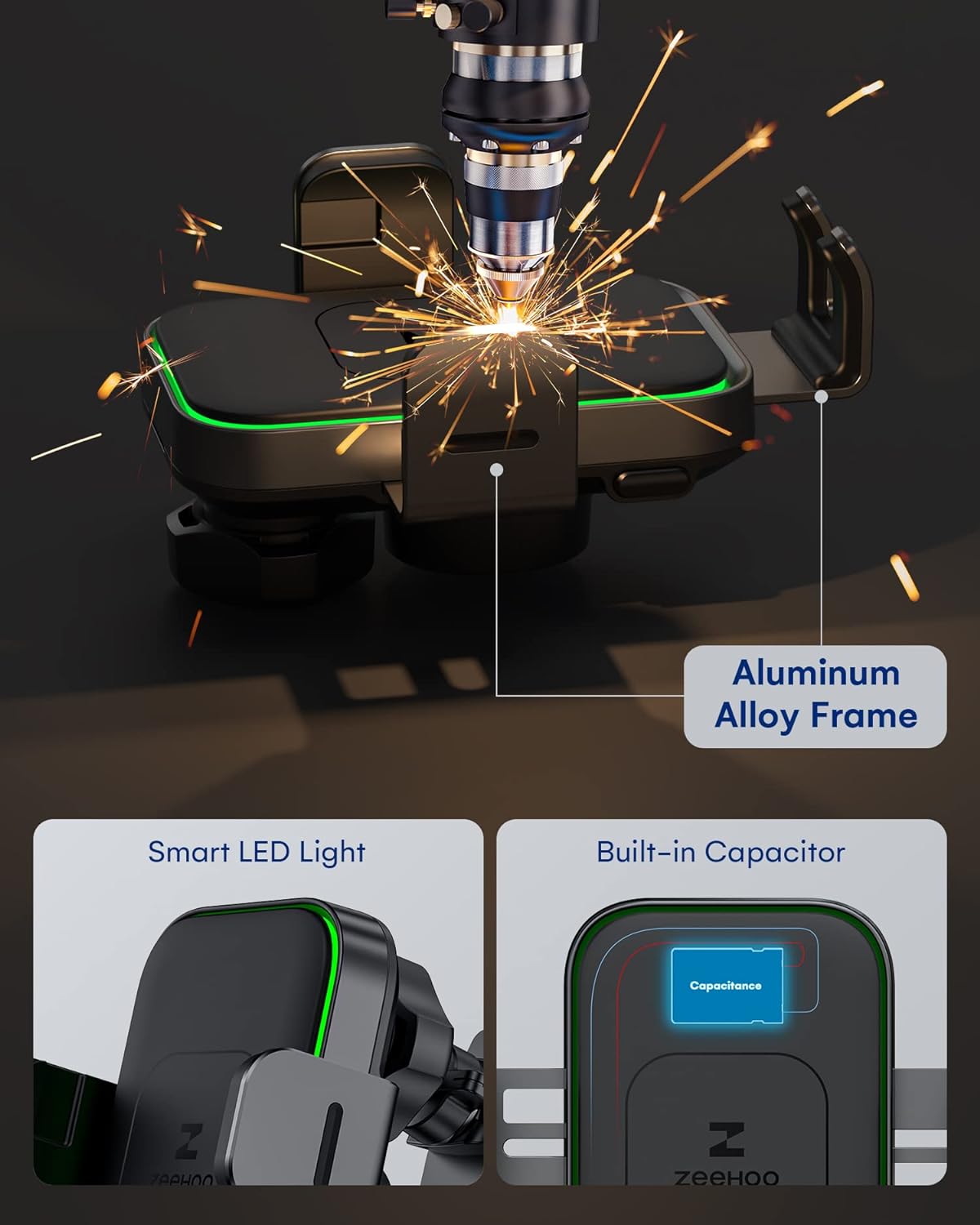 - Auto-Align Smart Charging Cradle -- The Auto-Alignment charging function makes using this car wireless charger a breeze. When it senses your phone, it will automatically lock your phone and adjust to align the charging coil according to your phone size, eliminating the need for manual configuration.