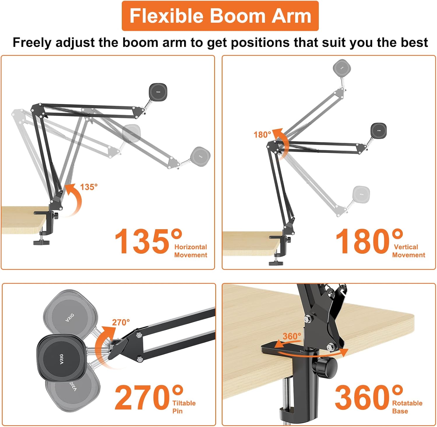 - 【Desk Mounting】The c clamp can mount a desk max 1.8 inch thickness, the tripod fits most tables, desktop, workbench, sideboard etc, save the space for your desk and leave more area for your photo shoot, video shooting, live streaming, makeup, webcam meeting; The long arm can help you reach wide range of your desk area or over the monitor