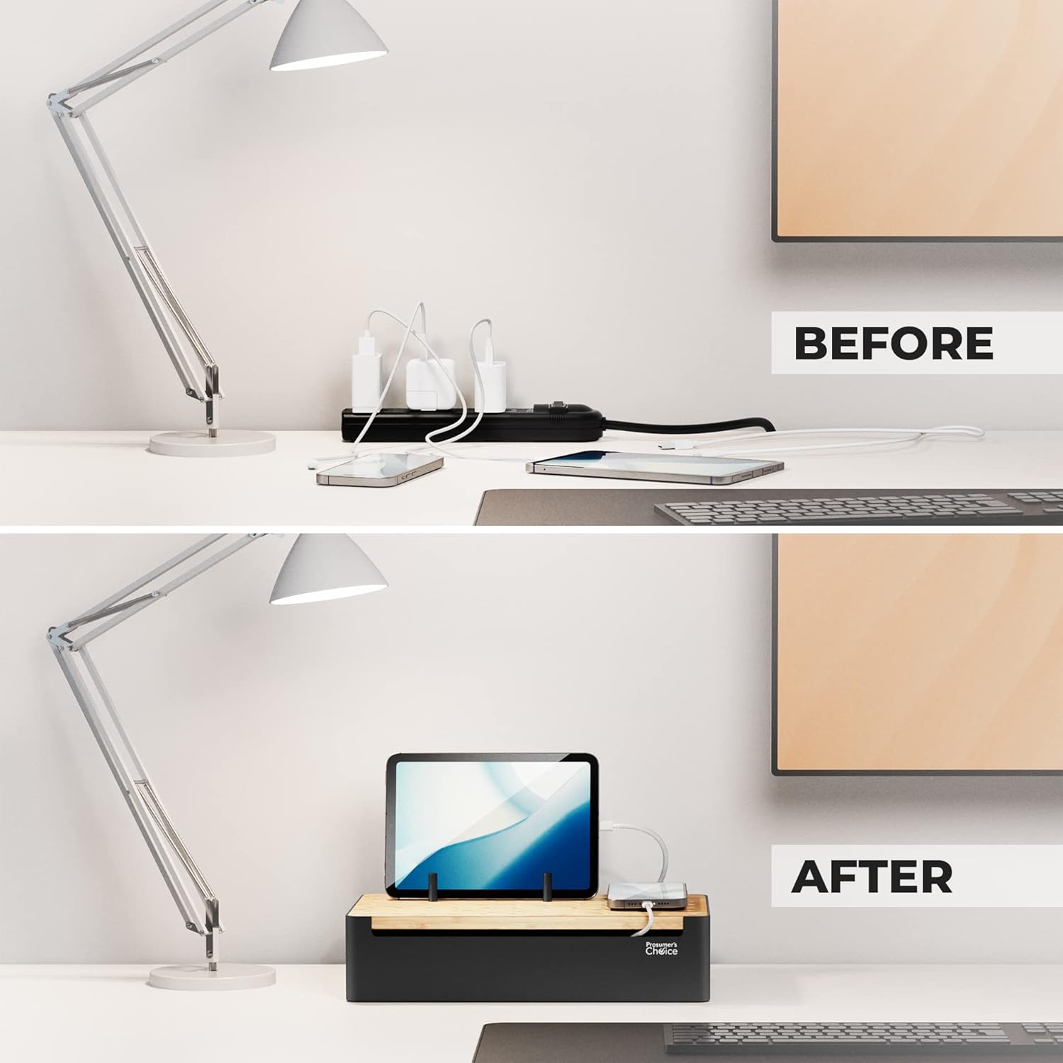 - Tidy Cable Management: This phone charging station offers smart cable management; keeps cords neatly out of sight for a clutter-free desk or countertop setup; perfect for busy workspaces
