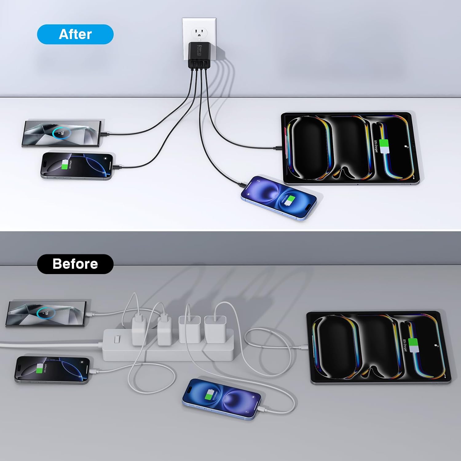 - Multiport Charging:The charger block has Dual USB-C ports and Dual USB-A ports. Allow users to charge phone, tablet and headphones simultaneously to minimize waiting time. Itβs also a great space saver instead of taking up 4 wall outlet ports. The best replacement for your original usb charger